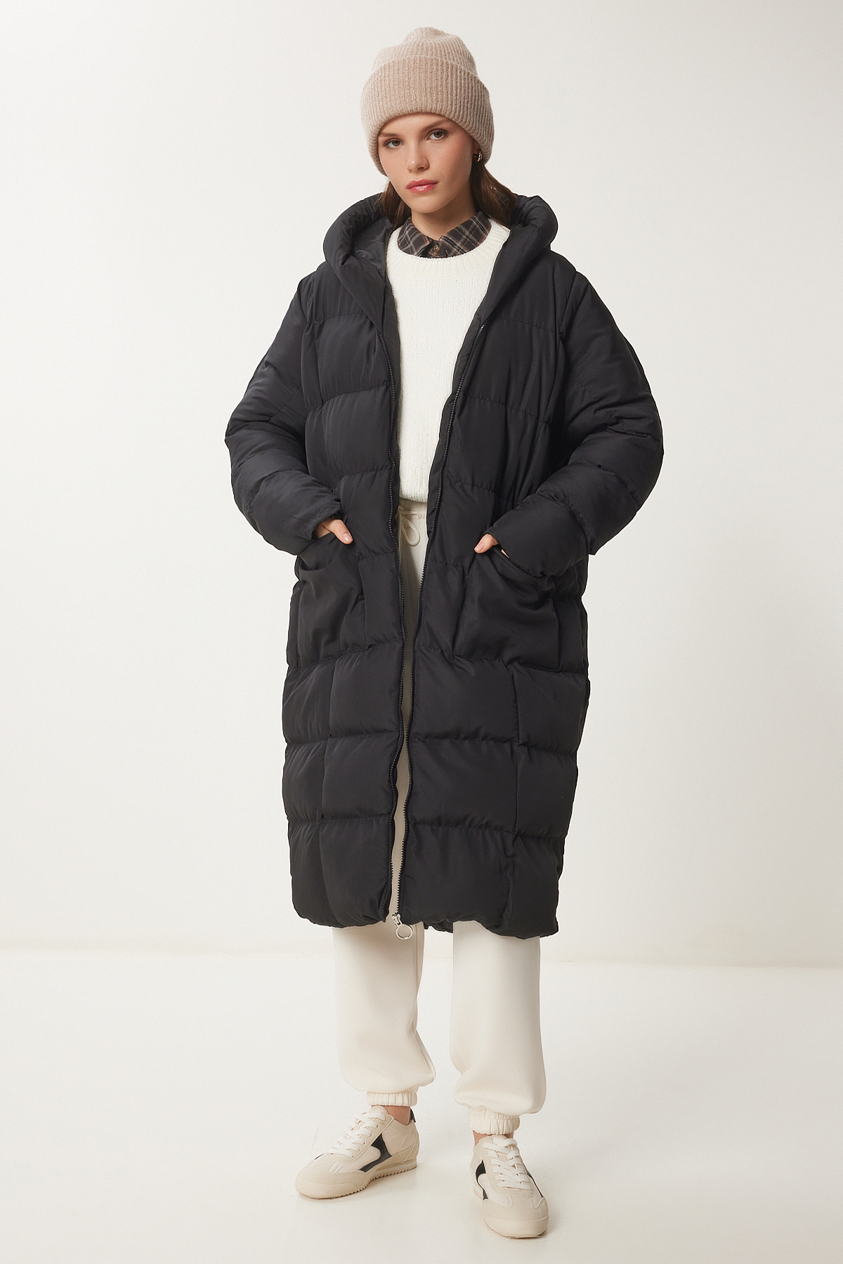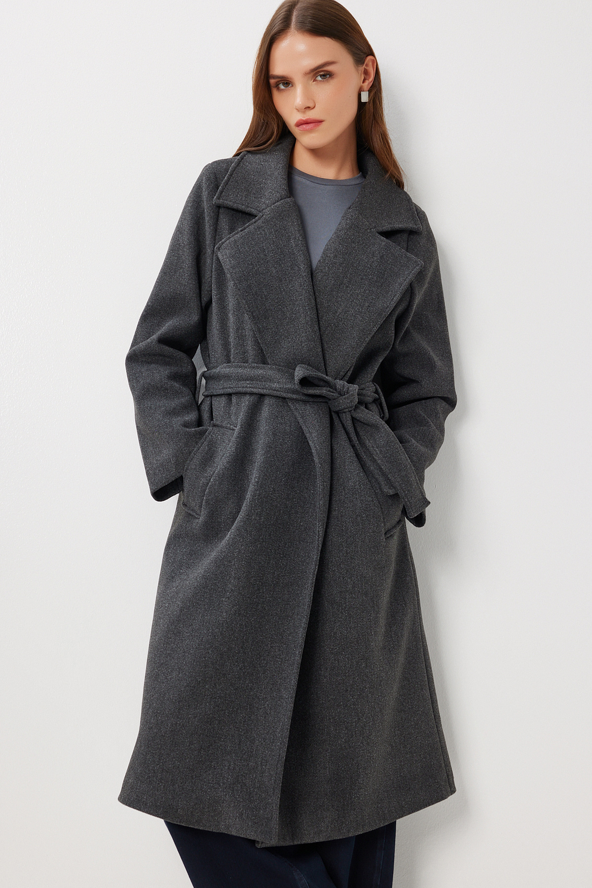 Kruvaze Yaka Kuşaklı Kaşe Kaban LGP0030 ANTRASİT Kruvaze Yaka Kuşaklı Kaşe Kaban LGP0030 ANTRASİT 42