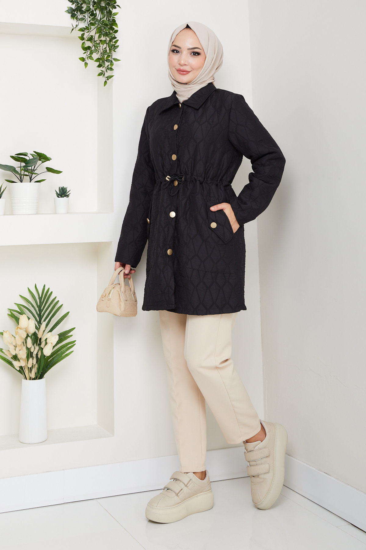 Kadın Beli Tünel Geçişli Kapitone Ceket Mont Kadın Beli Tünel Geçişli Kapitone Ceket Mont pmk472 52