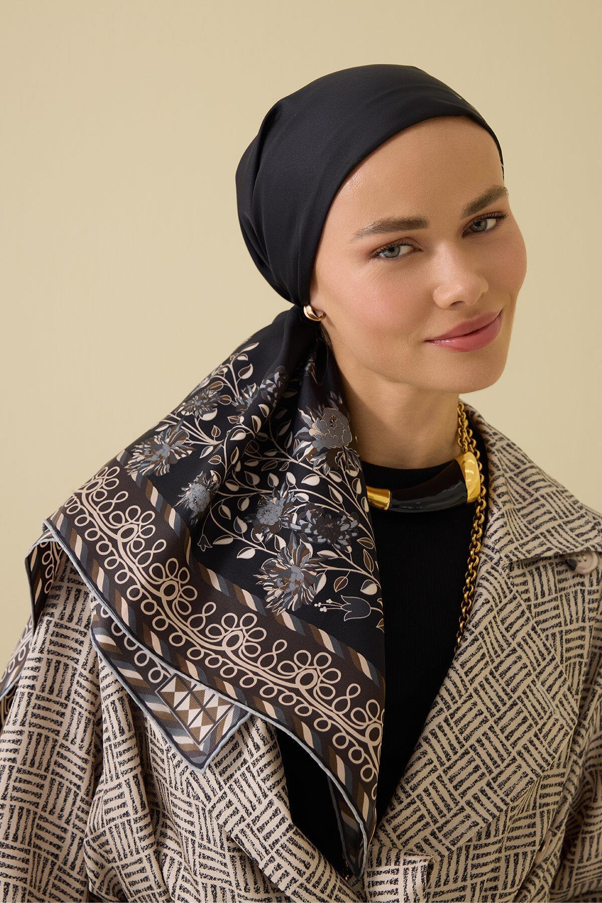 Twill İpek Eşarp - Çizgili Signature - Gümüş Siyah Twill İpek Eşarp - Çizgili Signature - Gümüş Siyah 10442 90x90