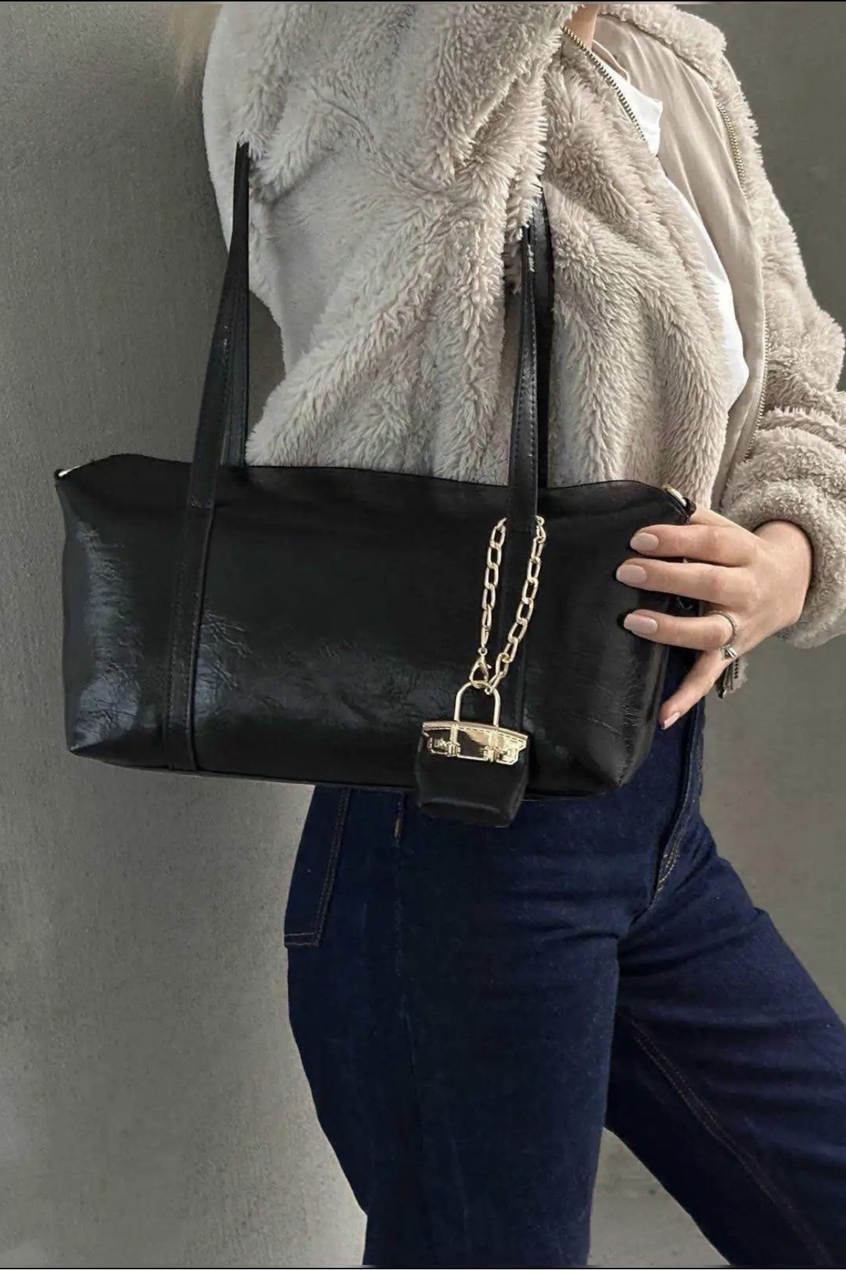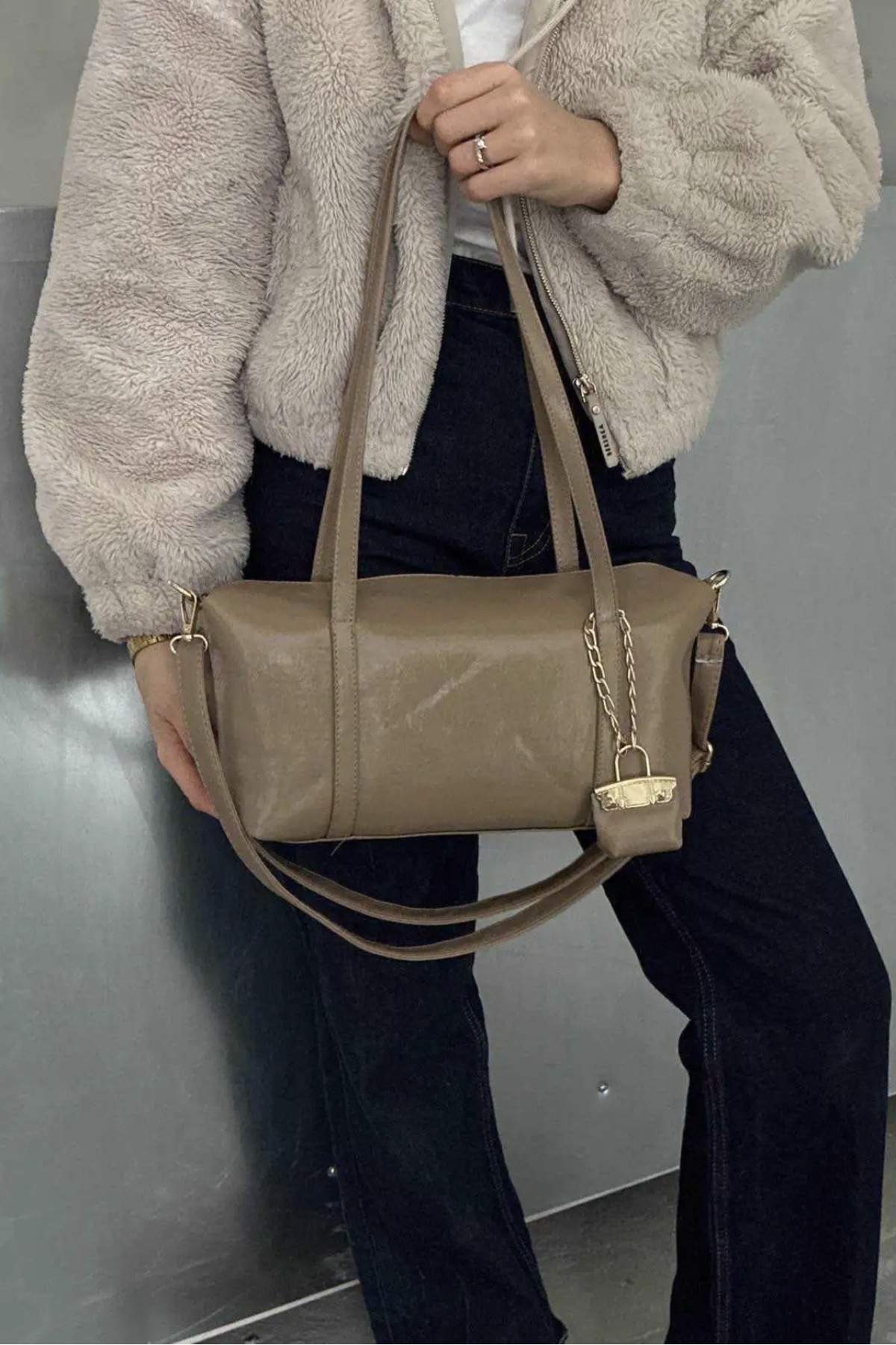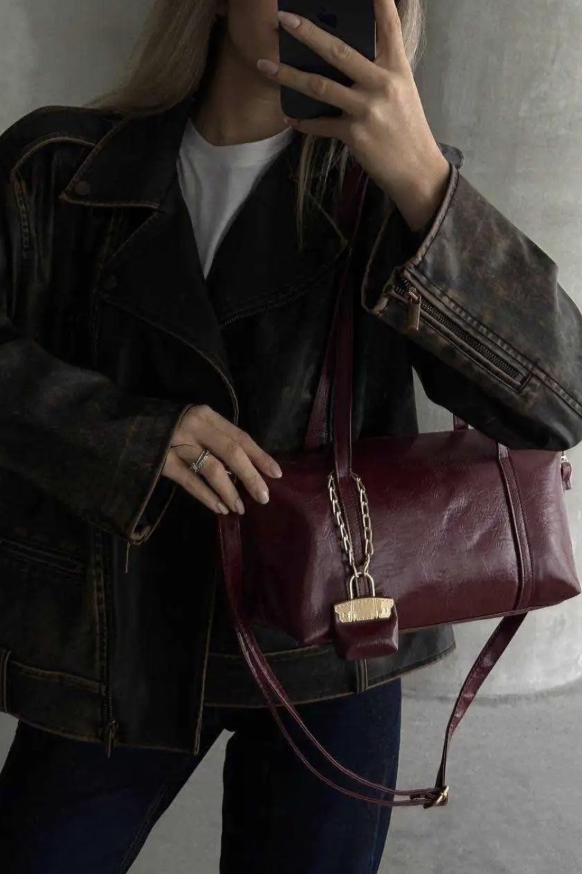 Bordo Deri Charm Detaylı Kadın El Ve Omuz Çanta Bordo Deri Charm Detaylı Kadın El Ve Omuz Çanta Siena Standart