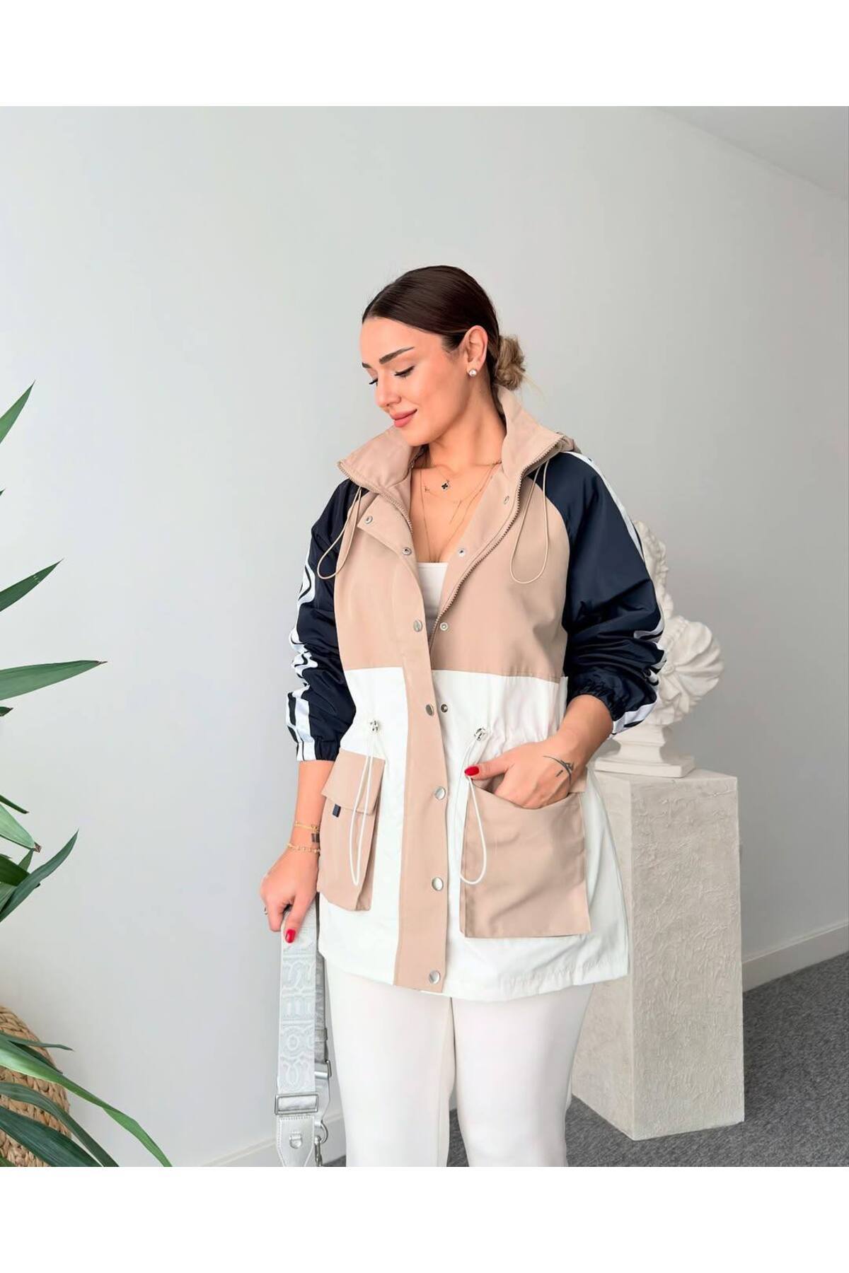 VETO Kadın RenkliReglan Kollu Kapüşonlu Ara Boy Yağmurluk MONT VETO Kadın RenkliReglan Kollu Kapüşonlu Ara Boy Yağmurluk MONT 2821 L