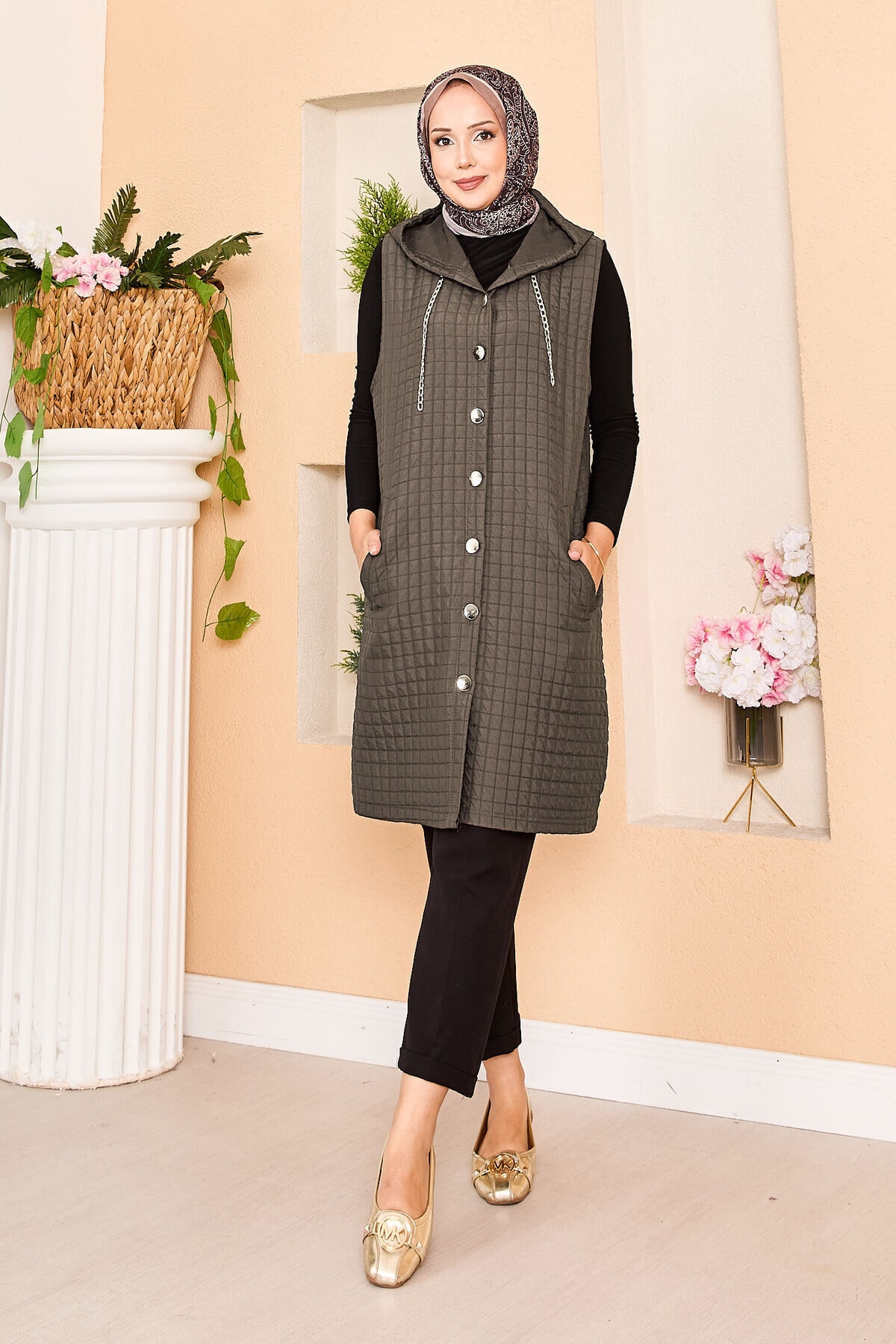 Kapüşonlu Gold Düğme Detaylı Kapitone Yelek Kapüşonlu Gold Düğme Detaylı Kapitone Yelek 553528-125M00920790 42