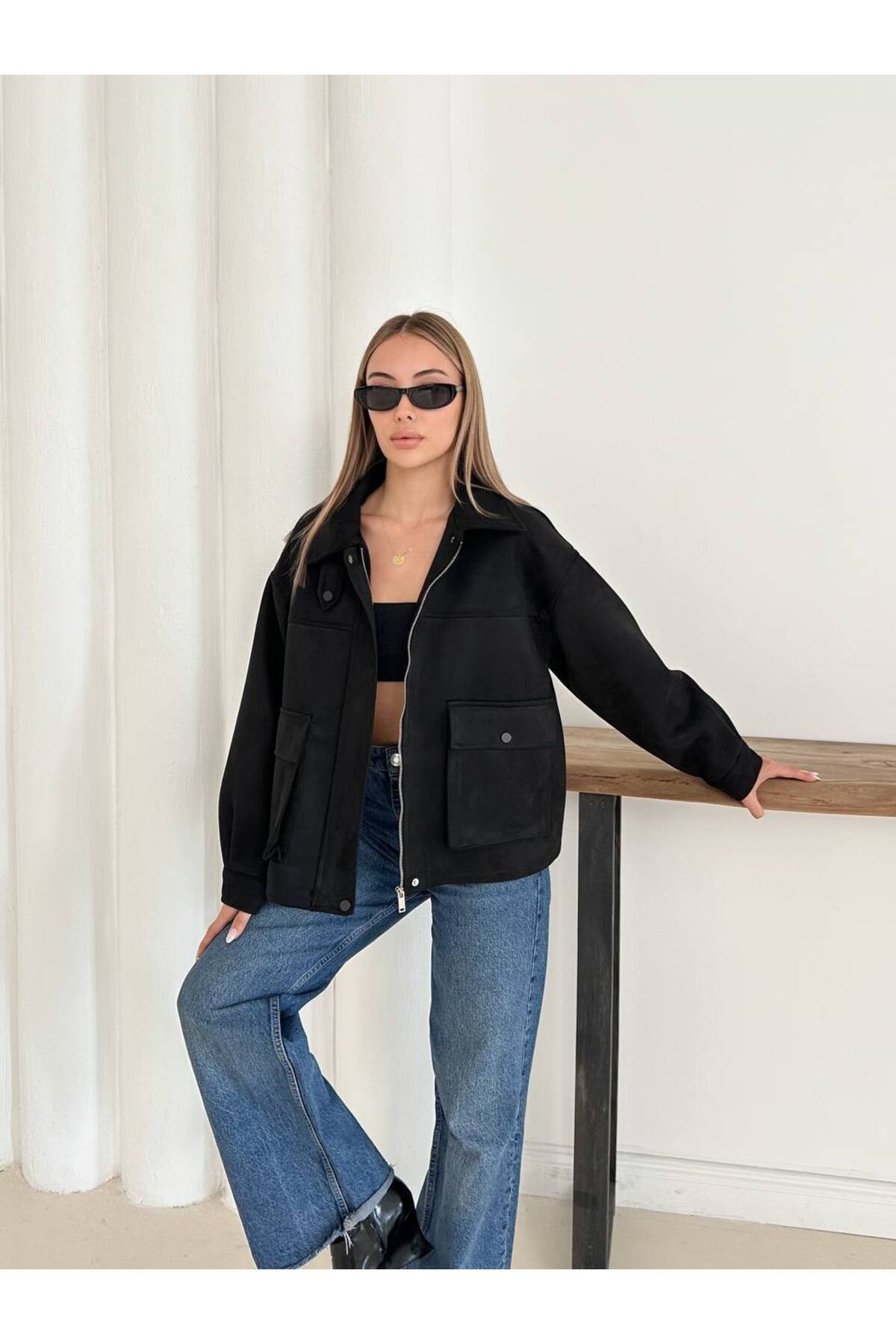 Kadın Oversize Süet Ceket Çift Cepli Fermuarlı Yeni Sezon Dış Giyim Kadın Oversize Süet Ceket Çift Cepli Fermuarlı Yeni Sezon Dış Giyim 8261919 L