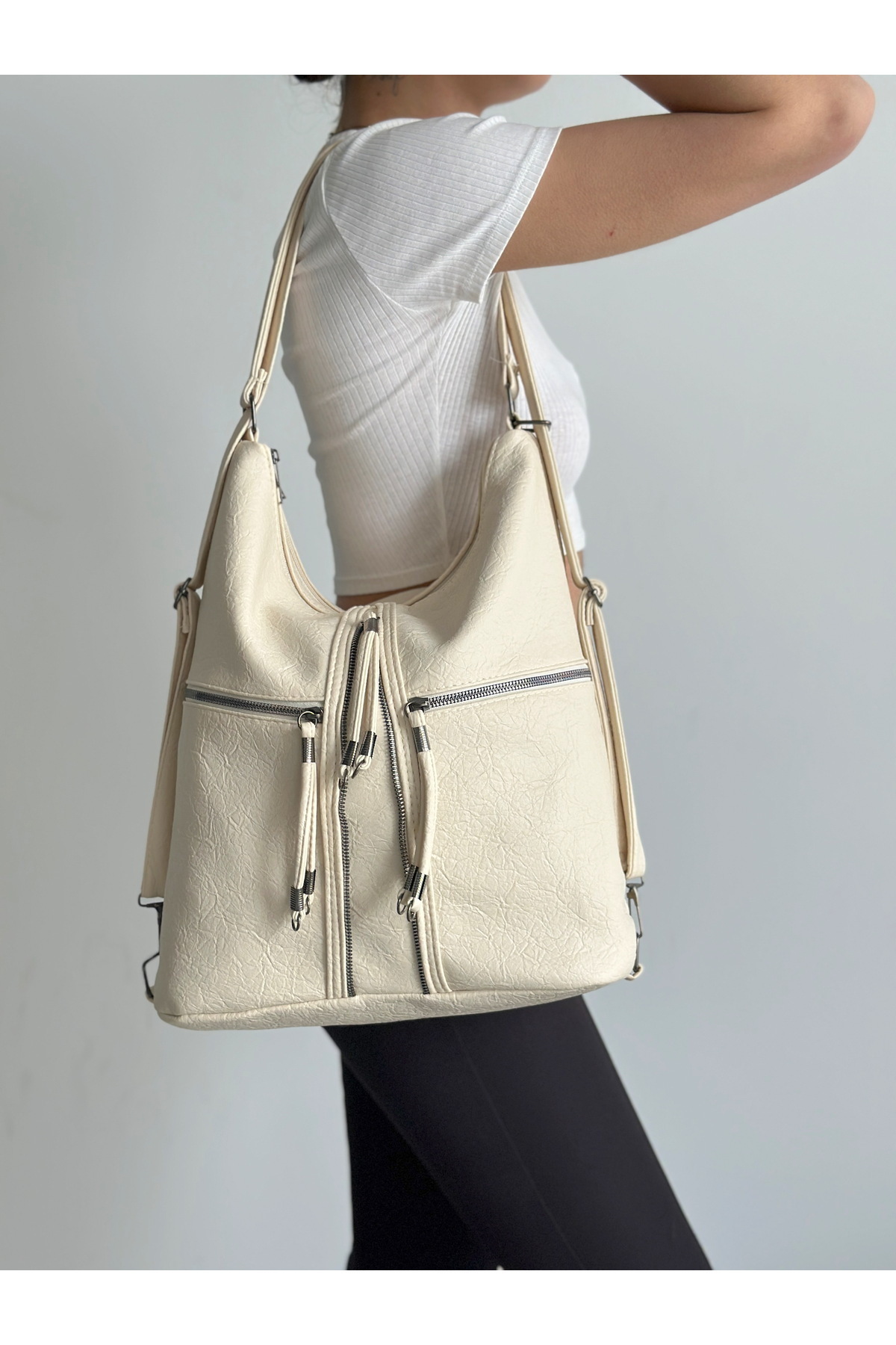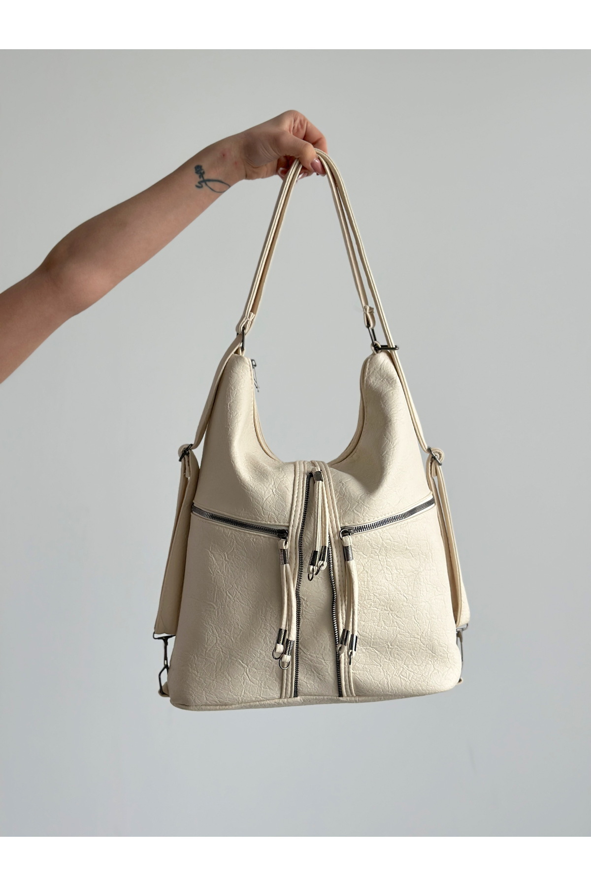 Yumuşak Suni Deri Krem El Omuz ve Sırt Kullanımına Uygun Kadın Çanta Yumuşak Suni Deri Krem El Omuz ve Sırt Kullanımına Uygun Kadın Çanta BaranÇanta-001 تک سایز