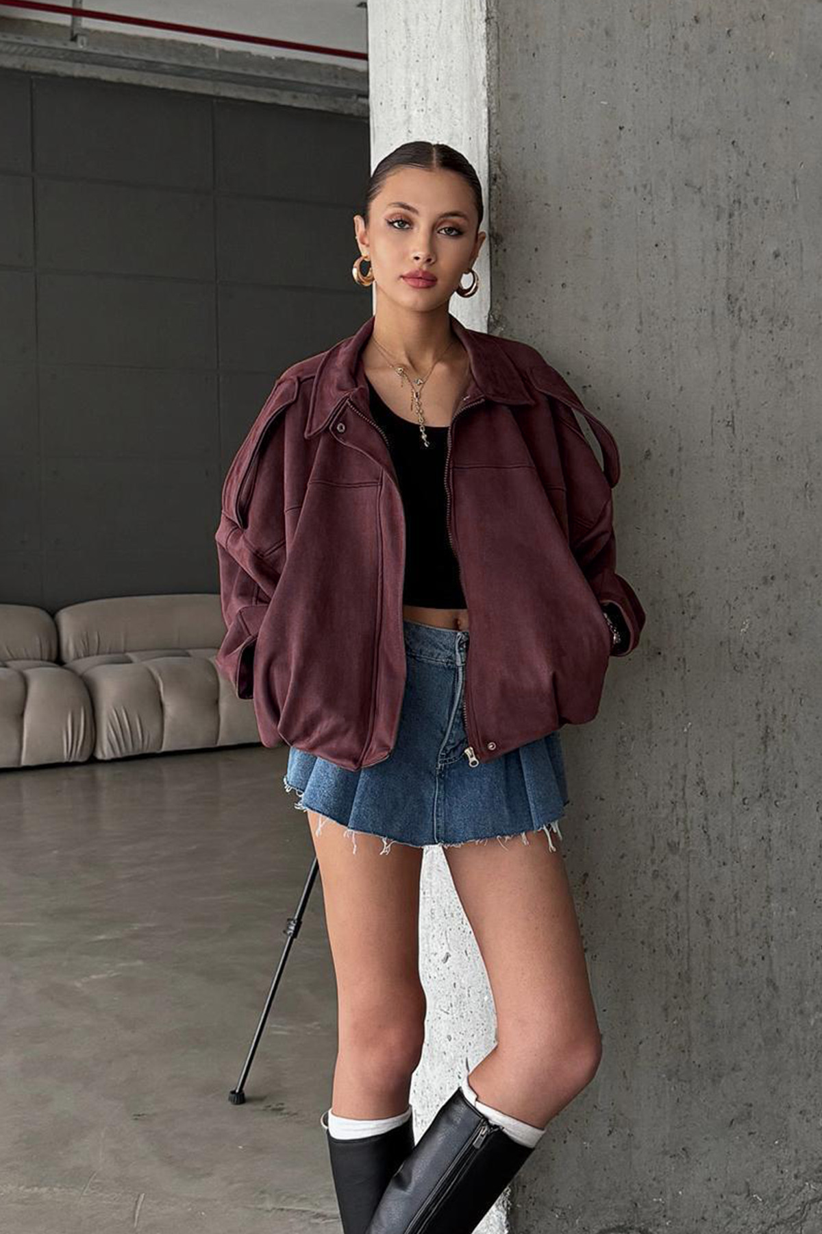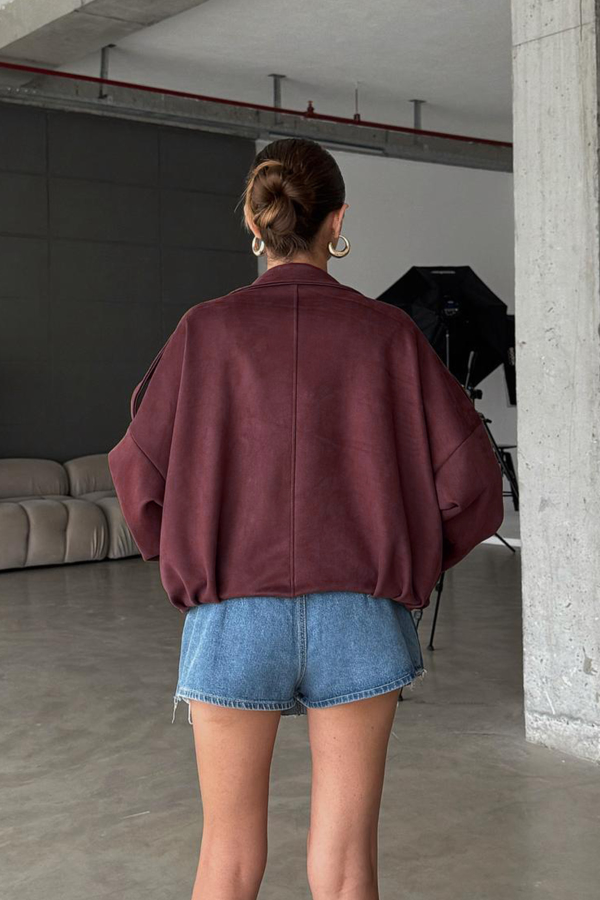 Oversize Kadın Bomber Bordo Süet Deri Ceket Oversize Kadın Bomber Bordo Süet Deri Ceket Beyys-Style-Bomber XL