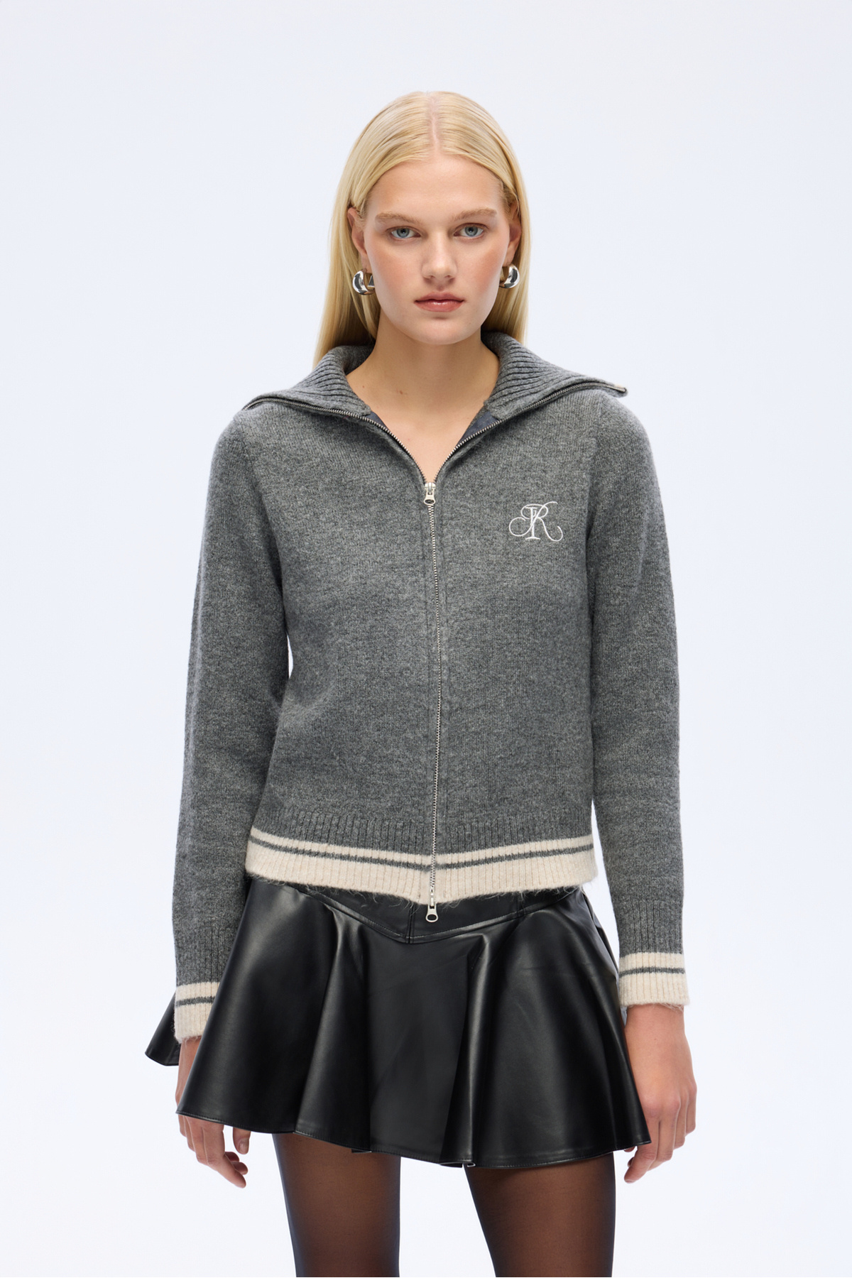 Kadın Polo Yaka Çift Fermuar Detaylı Hırka Kadın Polo Yaka Çift Fermuar Detaylı Hırka CD56742 Standart