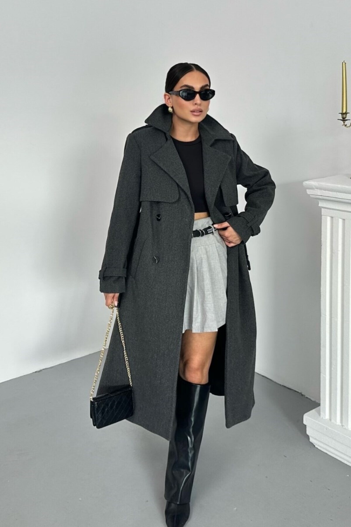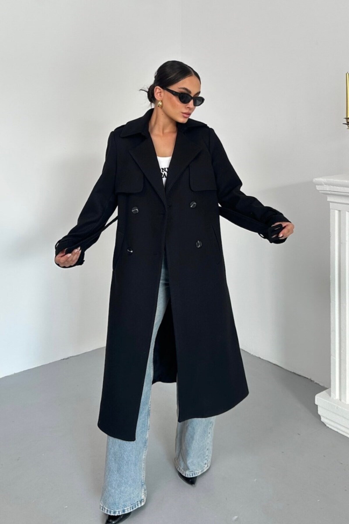 Kadın Kaban Uzun Kaşe Kuşaklı Düğmeli Cepli Kruvaze Premium Kaban Kadın Kaban Uzun Kaşe Kuşaklı Düğmeli Cepli Kruvaze Premium Kaban PRA-13162402-237372 42