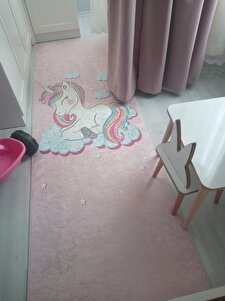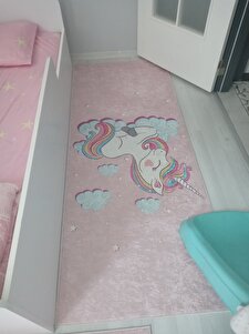 Kaymaz Taban Yikanabilir Pembe Zemin Tek Boynuzlu At Desenli Dijital Baskılı Çocuk Halısı Kaymaz Taban Yikanabilir Pembe Zemin Tek Boynuzlu At Desenli Dijital Baskılı Çocuk Halısı MNMRC2751 100 x 300