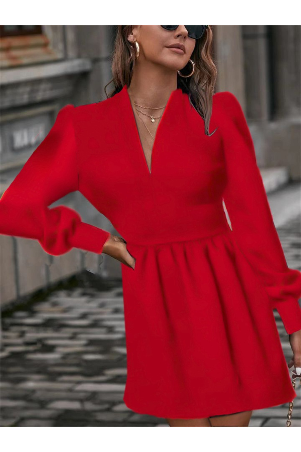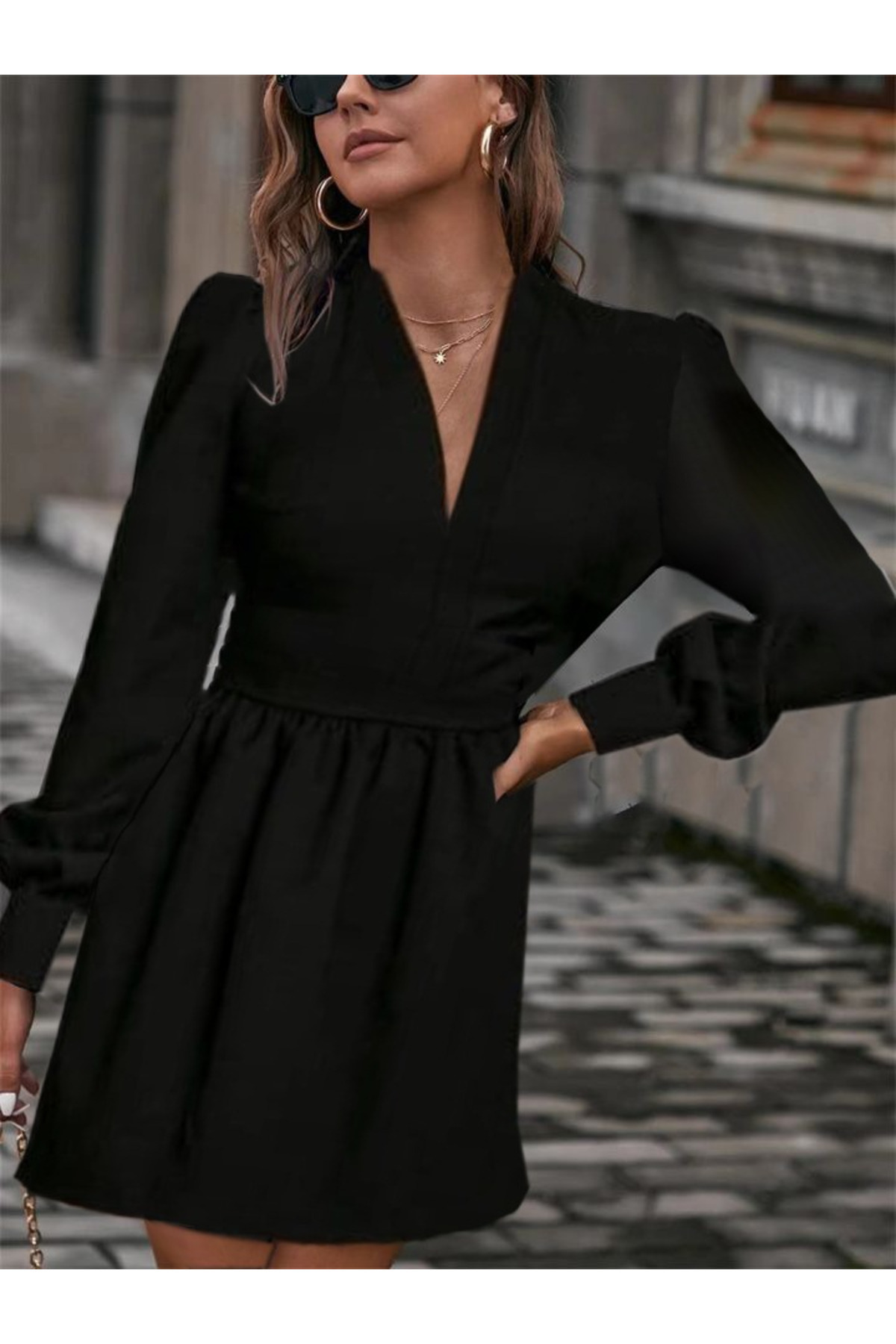 Kadın Uzun Kollu V Yaka Belden Hafif Pileli Scuba Krep Mini Boy Elbise Kadın Uzun Kollu V Yaka Belden Hafif Pileli Scuba Krep Mini Boy Elbise SNN-68de2e4015152 L/XL