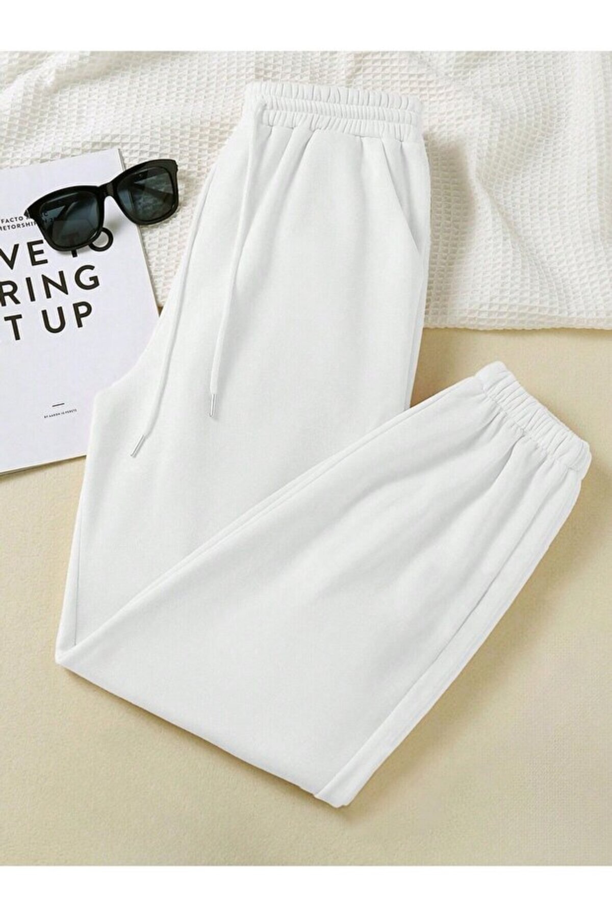 Unisex Beyaz İçi Polarlı Eşofman Altı Unisex Beyaz İçi Polarlı Eşofman Altı by4794 XL