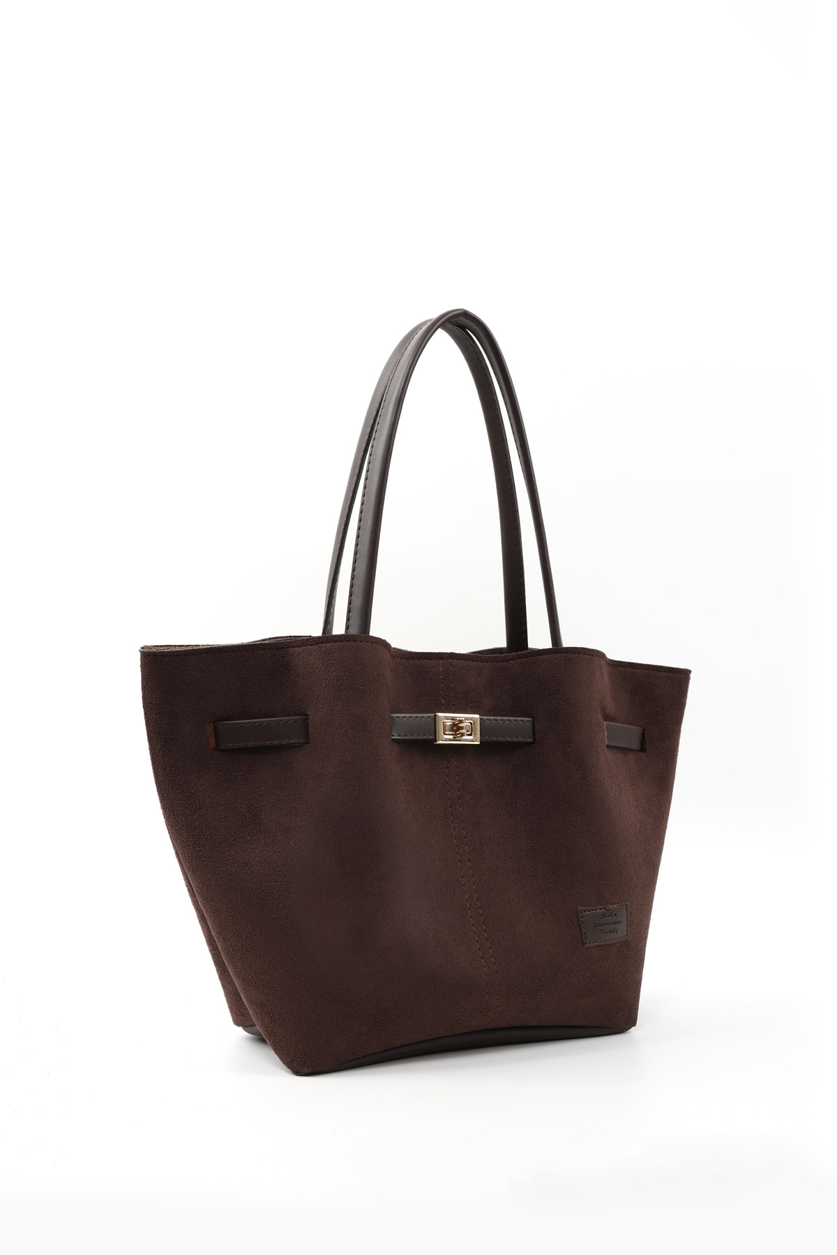 Kahverengi Shk159 Süet Kumaş Çıtçıtlı Tek Bölmeli , Astarlı, Kilit Detaylı El, Kol ve Omuz Çantası Kahverengi Shk159 Süet Kumaş Çıtçıtlı Tek Bölmeli , Astarlı, Kilit Detaylı El, Kol ve Omuz Çantası S225-00214 Standart