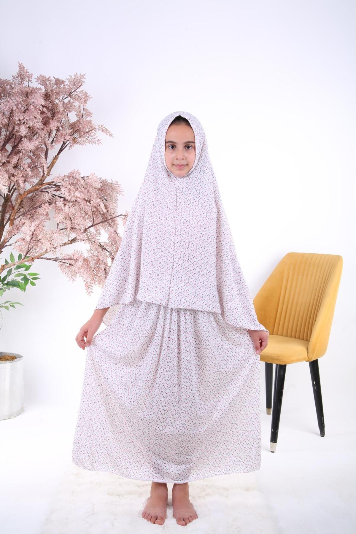 İki Parça Çiçek Desenli Kız Çocuk Namaz Elbisesi Kendinden Başörtülü- Muhtelif Renk Gönderilmektedir İki Parça Çiçek Desenli Kız Çocuk Namaz Elbisesi Kendinden Başörtülü- Muhtelif Renk Gönderilmektedir ÇocukNamazElbisesi 9-12 Yaş