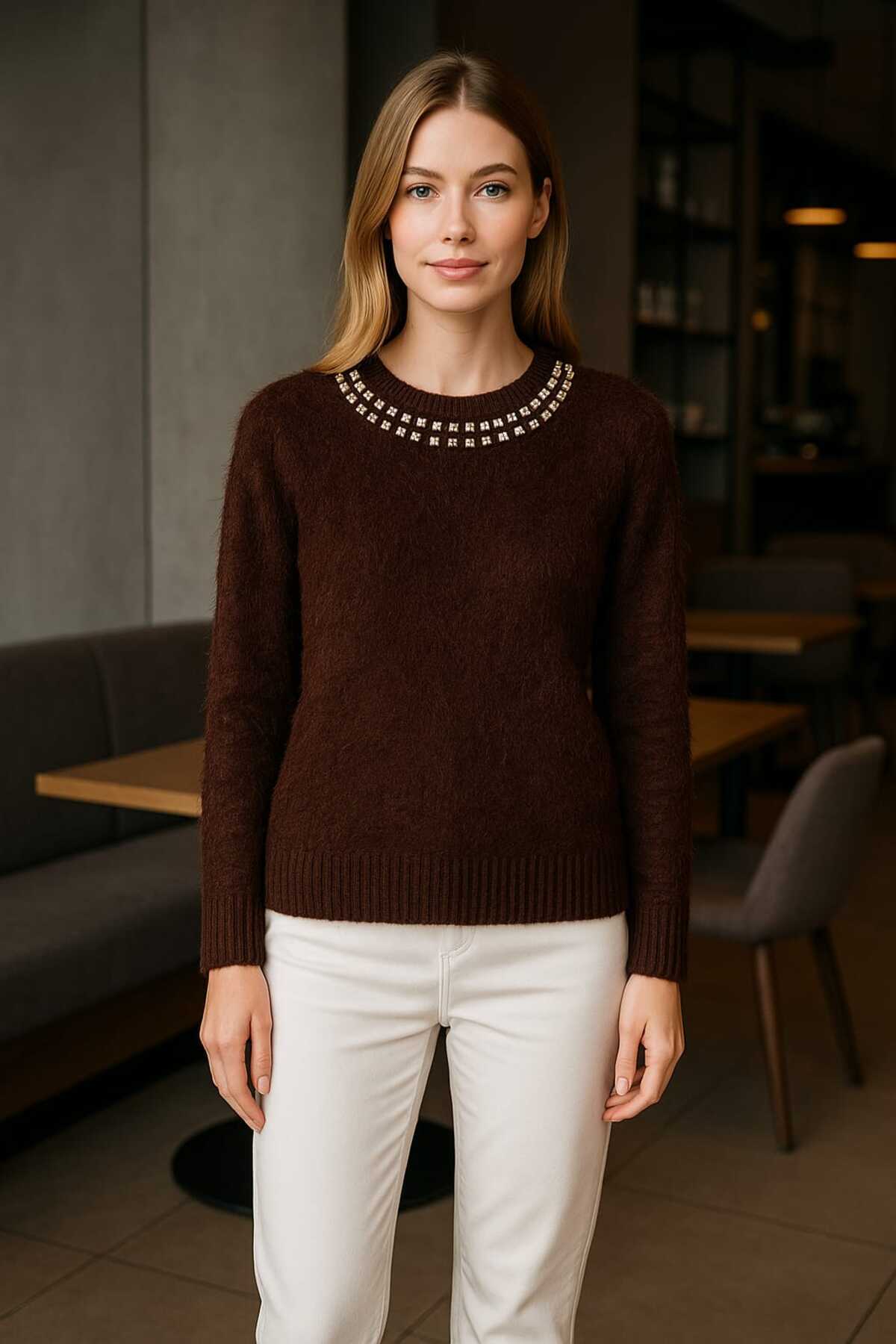 kadın/kız yakası taş detaylı sakallı kazak kadın/kız yakası taş detaylı sakallı kazak TYCC1B9681D1B8212CA554E00 Standart