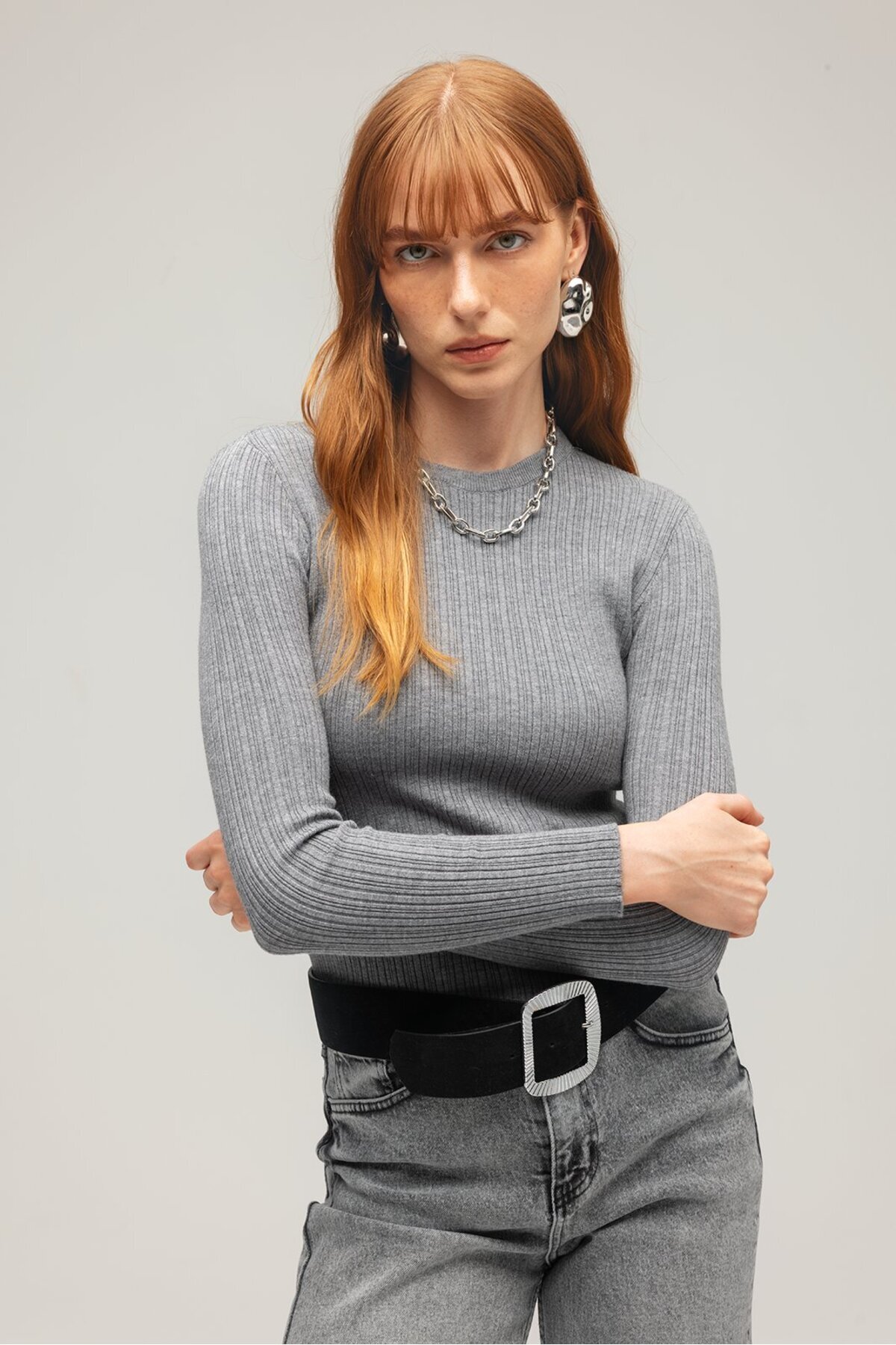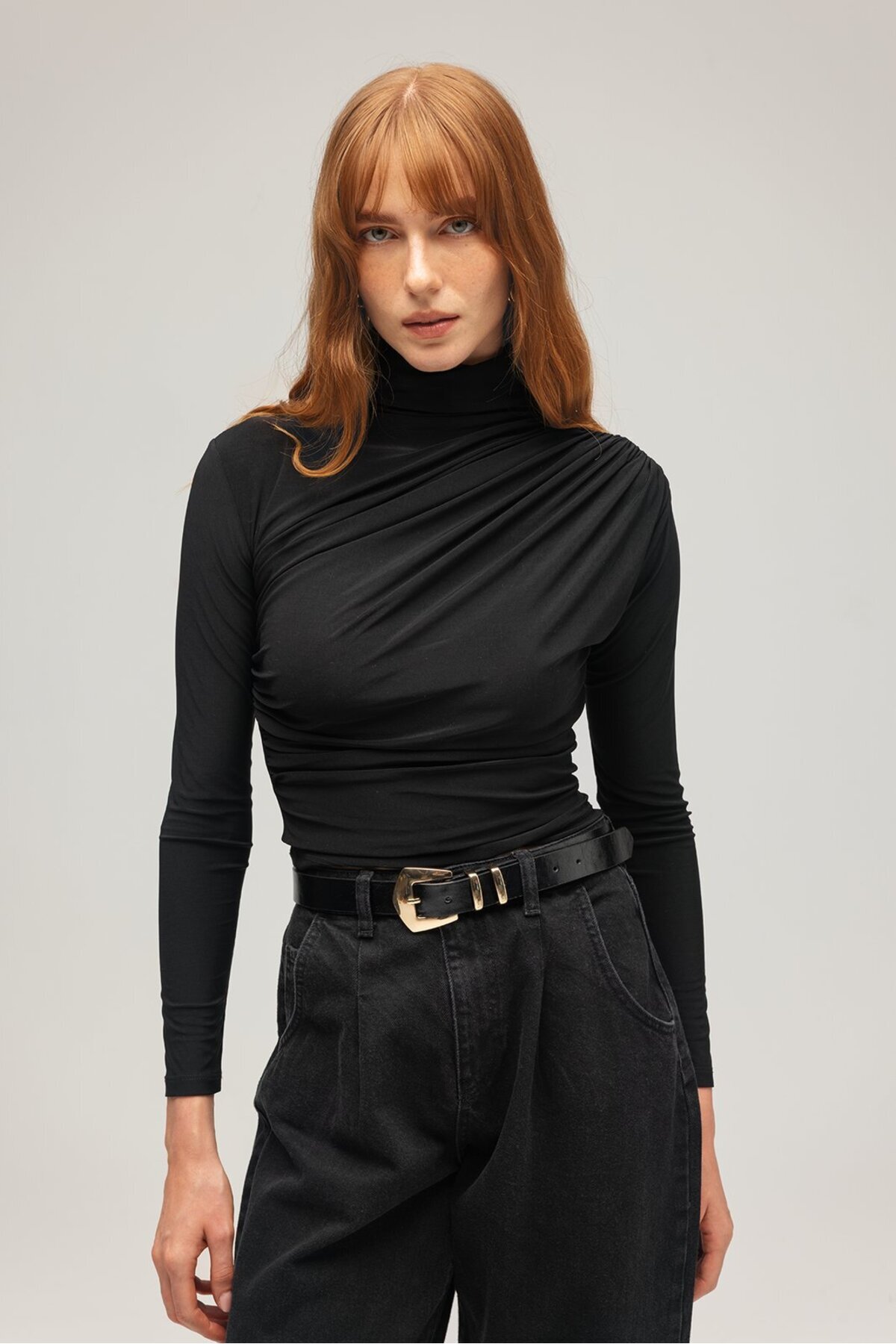 Kadın Omzu Vatkalı Drapeli Uzun Kollu Örme Bluz - Pile Detaylı Kadın Omzu Vatkalı Drapeli Uzun Kollu Örme Bluz - Pile Detaylı SD/MAW25BZ1119 L