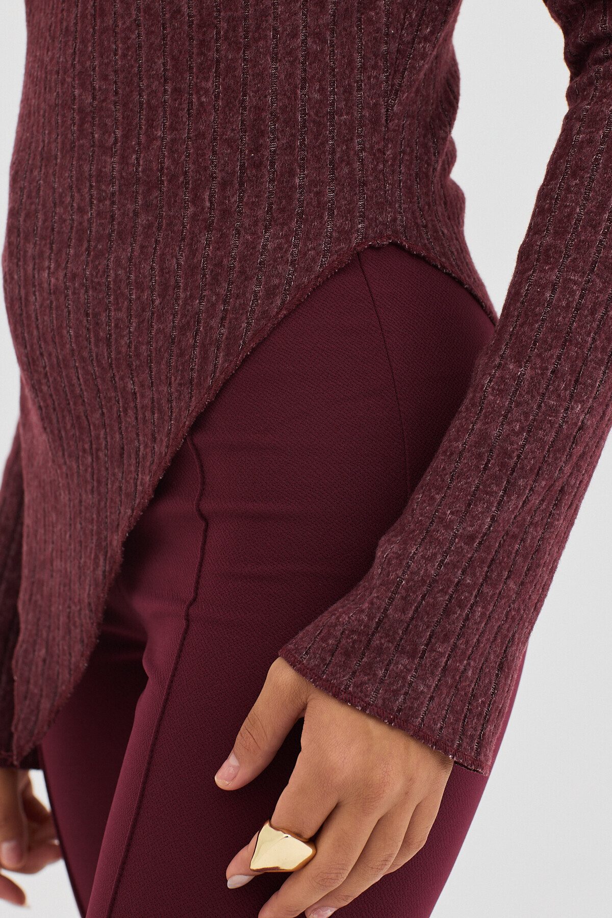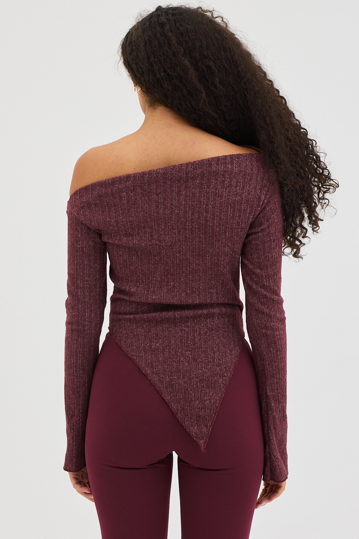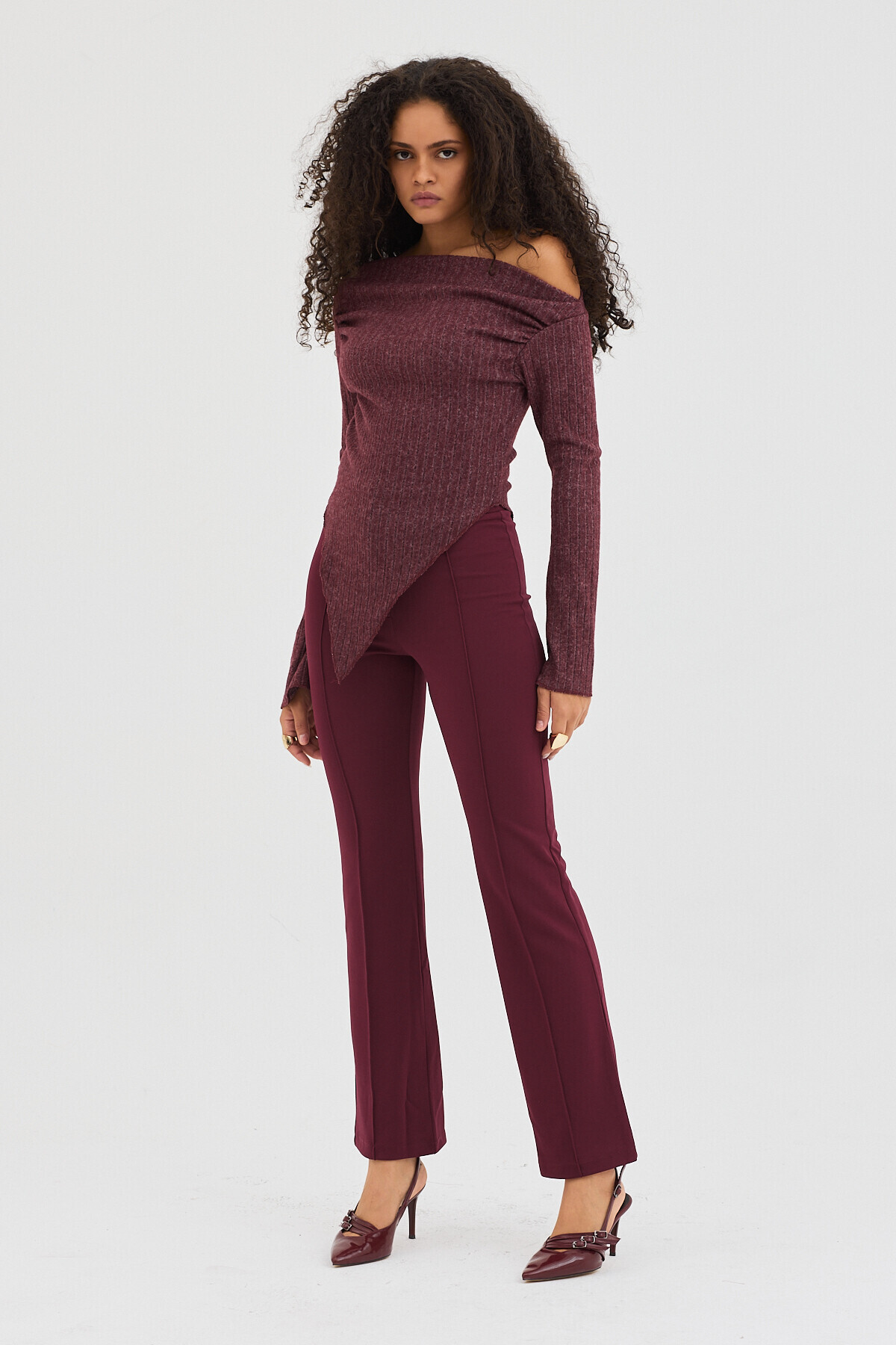 Kadın Tek Omuz Açık Uzun Kol, Asimetrik Esnek Kumaş Bluz - Bordo Kadın Tek Omuz Açık Uzun Kol, Asimetrik Esnek Kumaş Bluz - Bordo EcoSense_Asimetrik_Bluz_001 XL