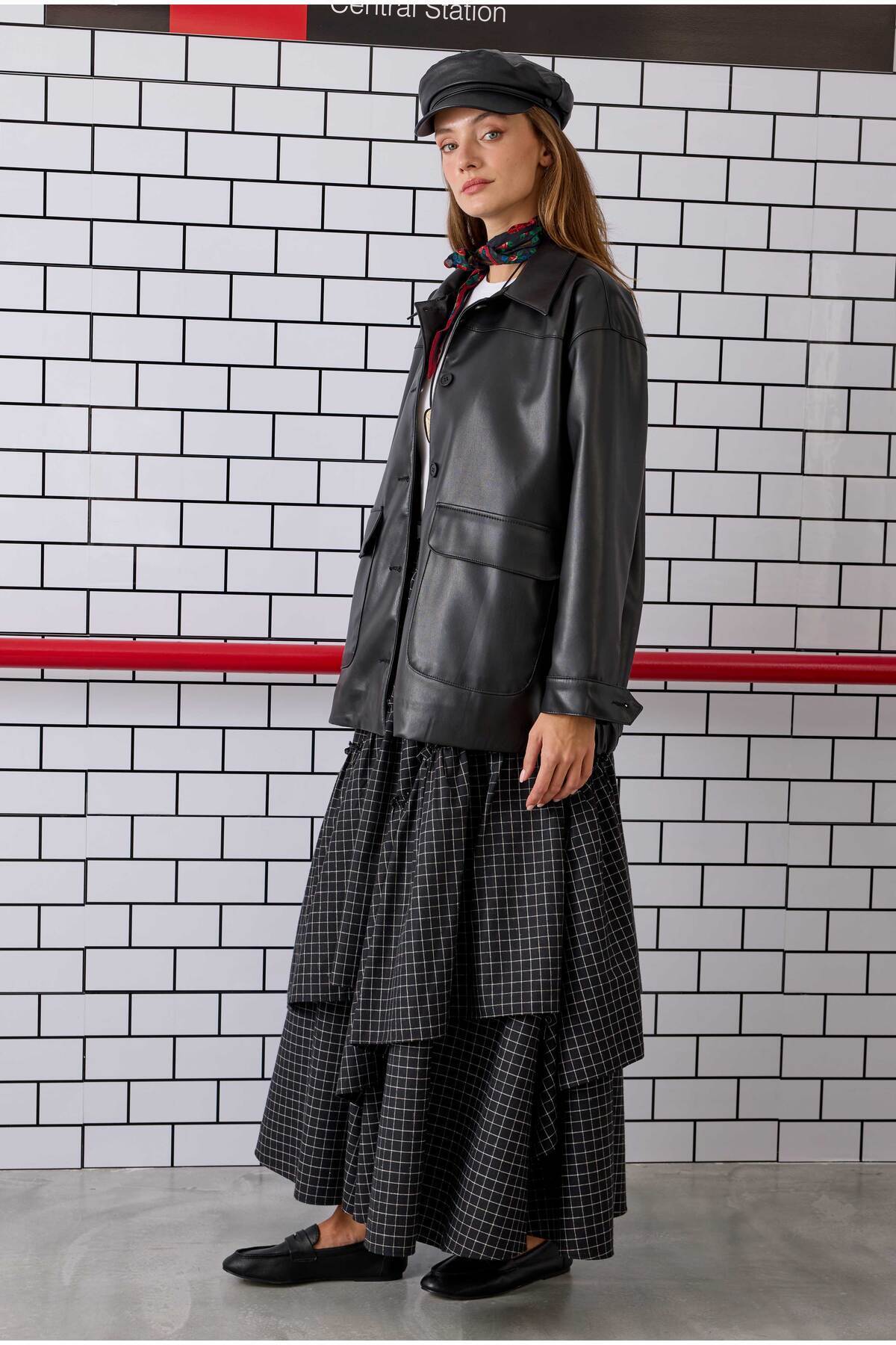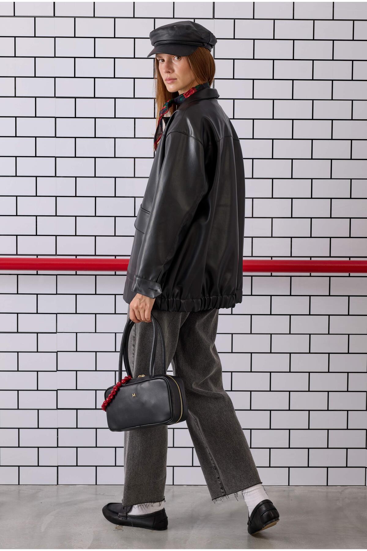 Spor Kesim Deri Ceket Siyah Spor Kesim Deri Ceket Siyah spkdv L
