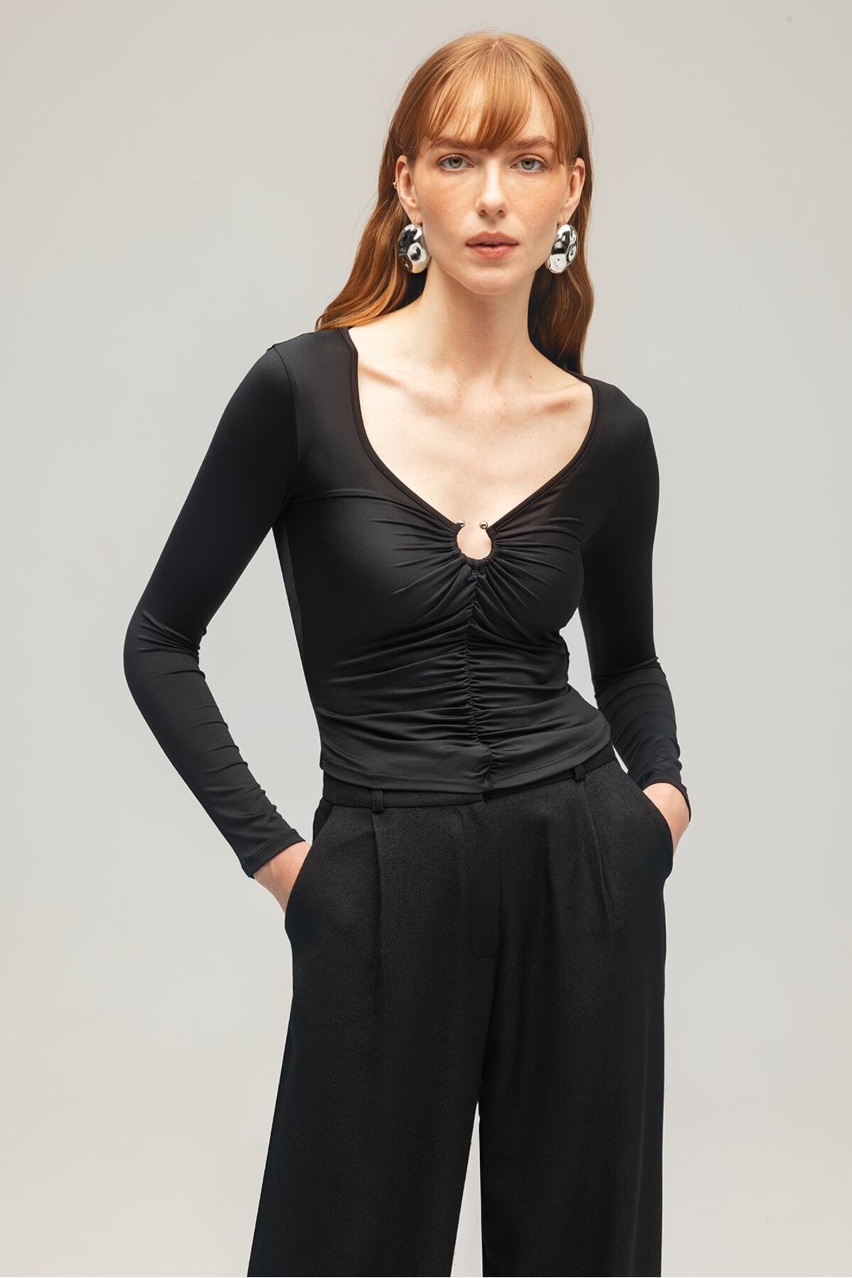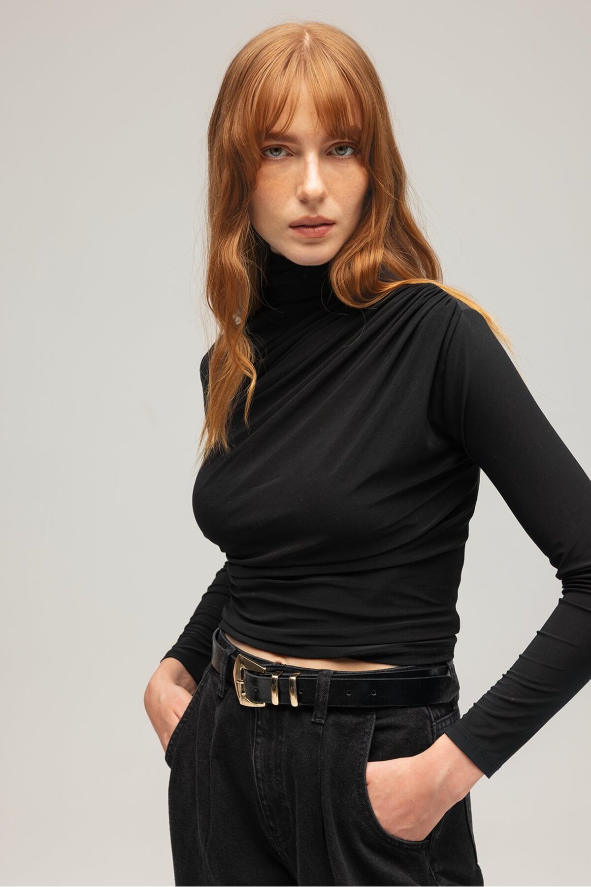 Siyah Kadın Drapeli Boğazlı Uzun Kollu Örme Bluz - Slim Fit Siyah Kadın Drapeli Boğazlı Uzun Kollu Örme Bluz - Slim Fit SD/MAW25BZ1122 L