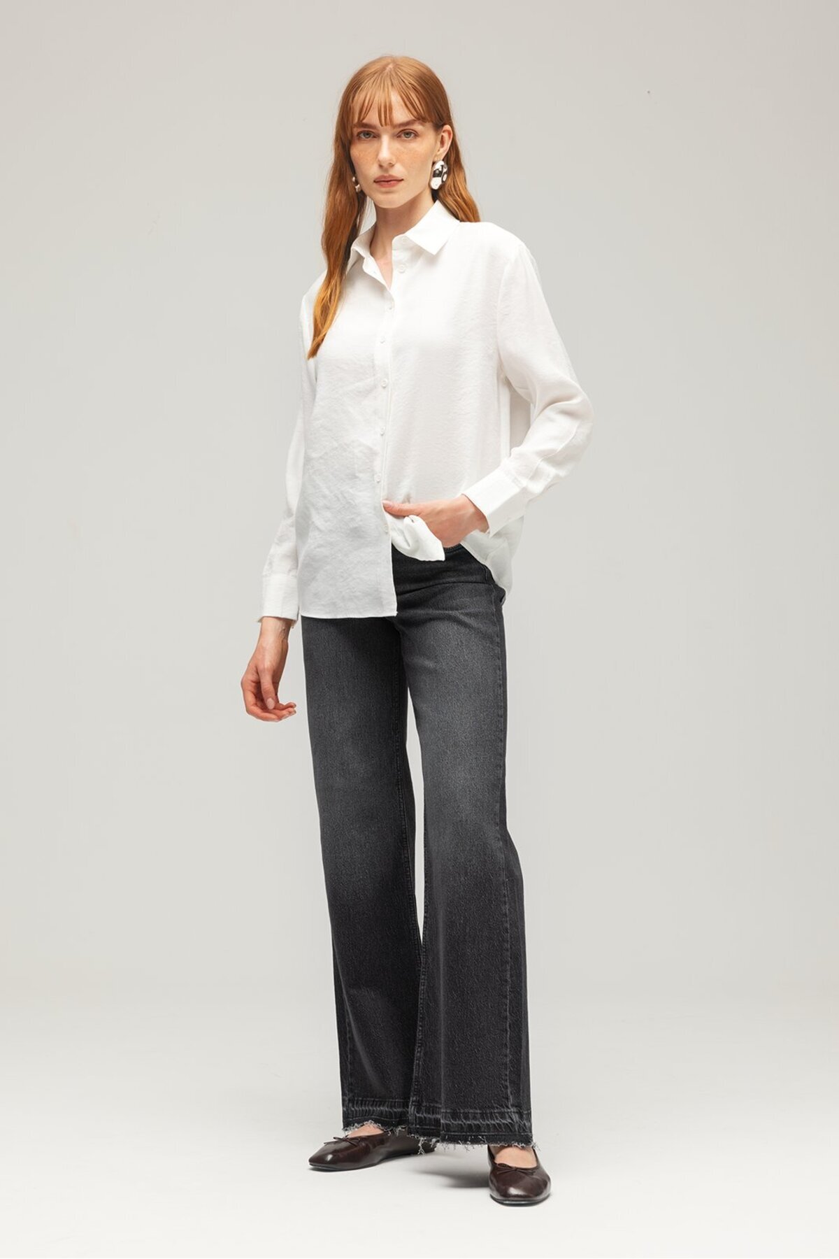 Siyah Kadın Yüksek Bel Wide Leg Jean Pantolon - Paça Detaylı Siyah Kadın Yüksek Bel Wide Leg Jean Pantolon - Paça Detaylı SD/MAW25JP1115 42