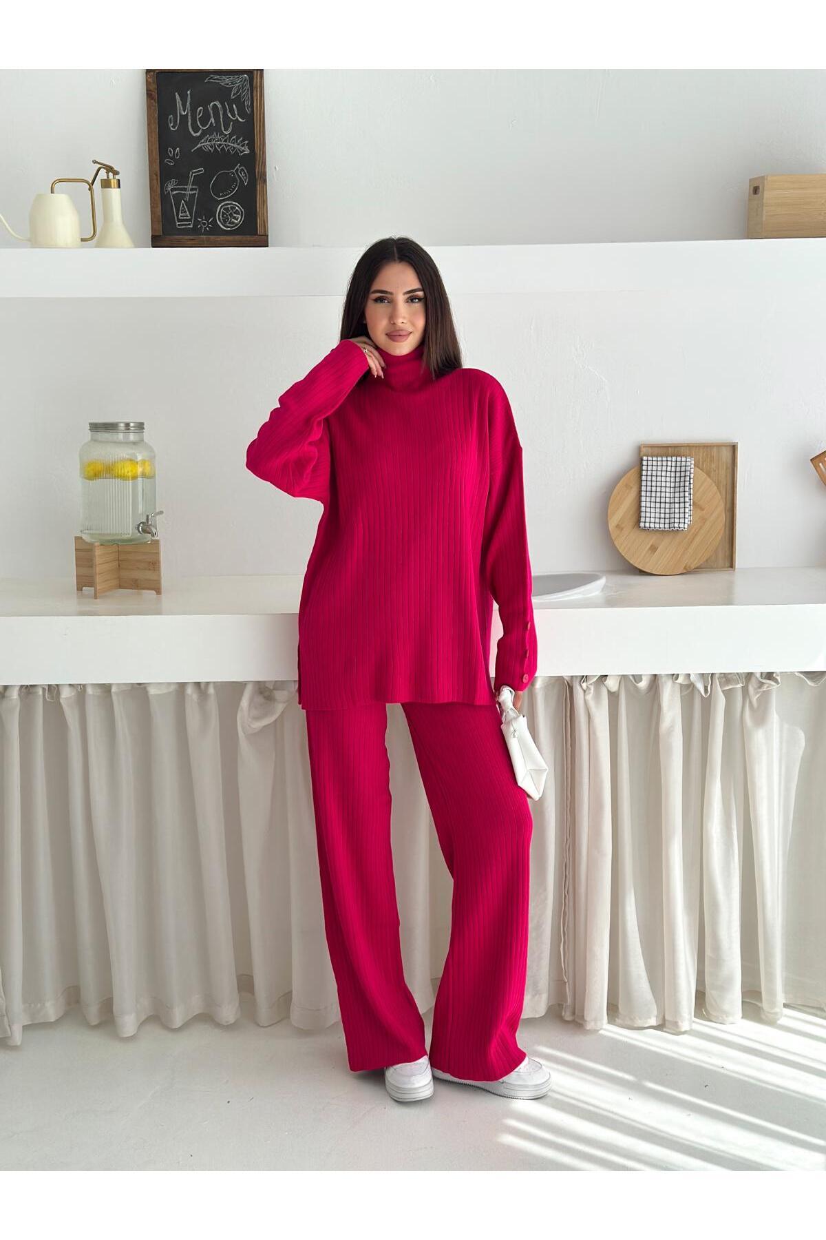 Balıkçı Yaka Düğme Detaylı Oversize Bol Paça İkili Triko Takım Balıkçı Yaka Düğme Detaylı Oversize Bol Paça İkili Triko Takım mıh-bog-ovrs-bol-pac-ıkı-trıko-tkm Standart