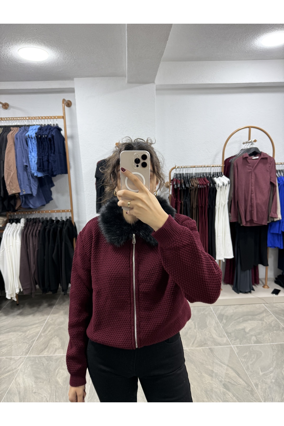Yakası Kürk Detaylı Fermuarlı Hırka Yakası Kürk Detaylı Fermuarlı Hırka KRKYKA01 Standart