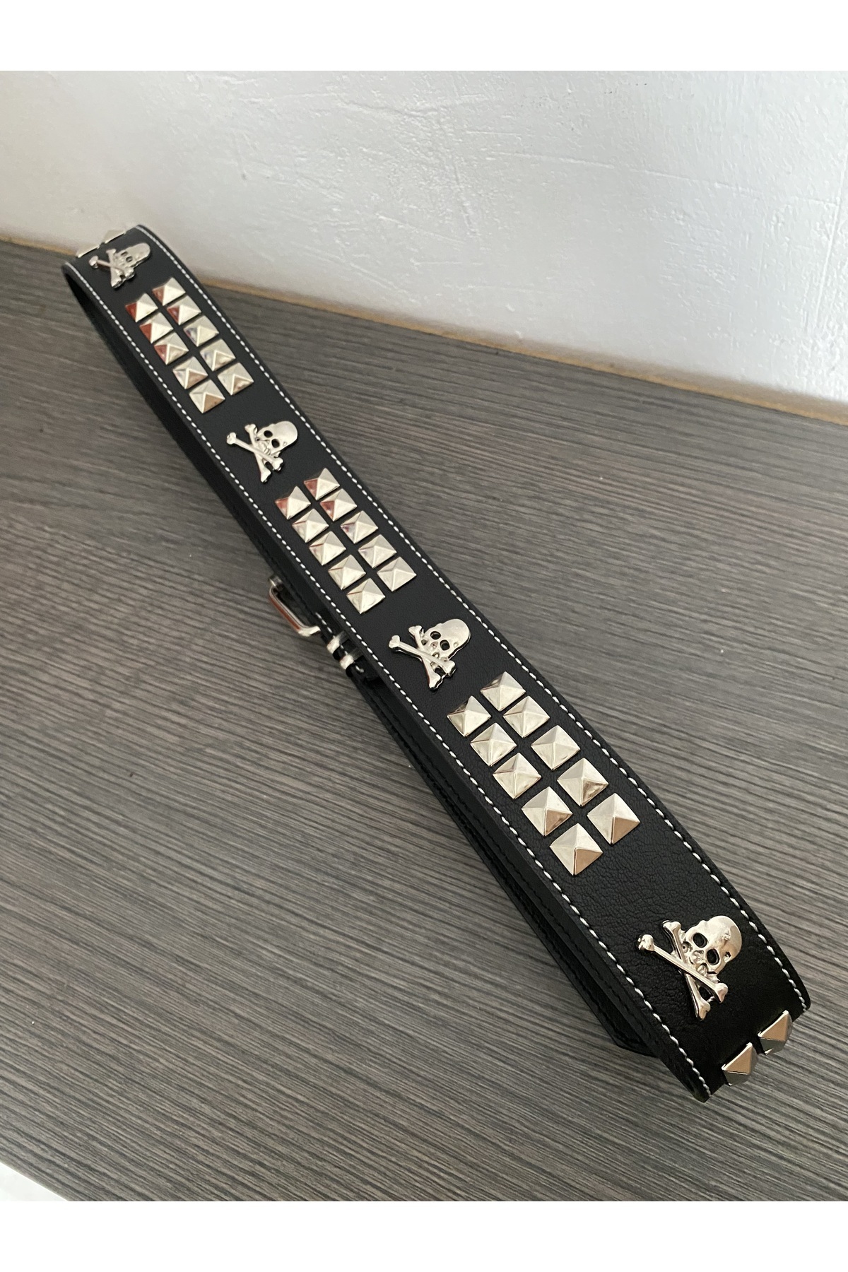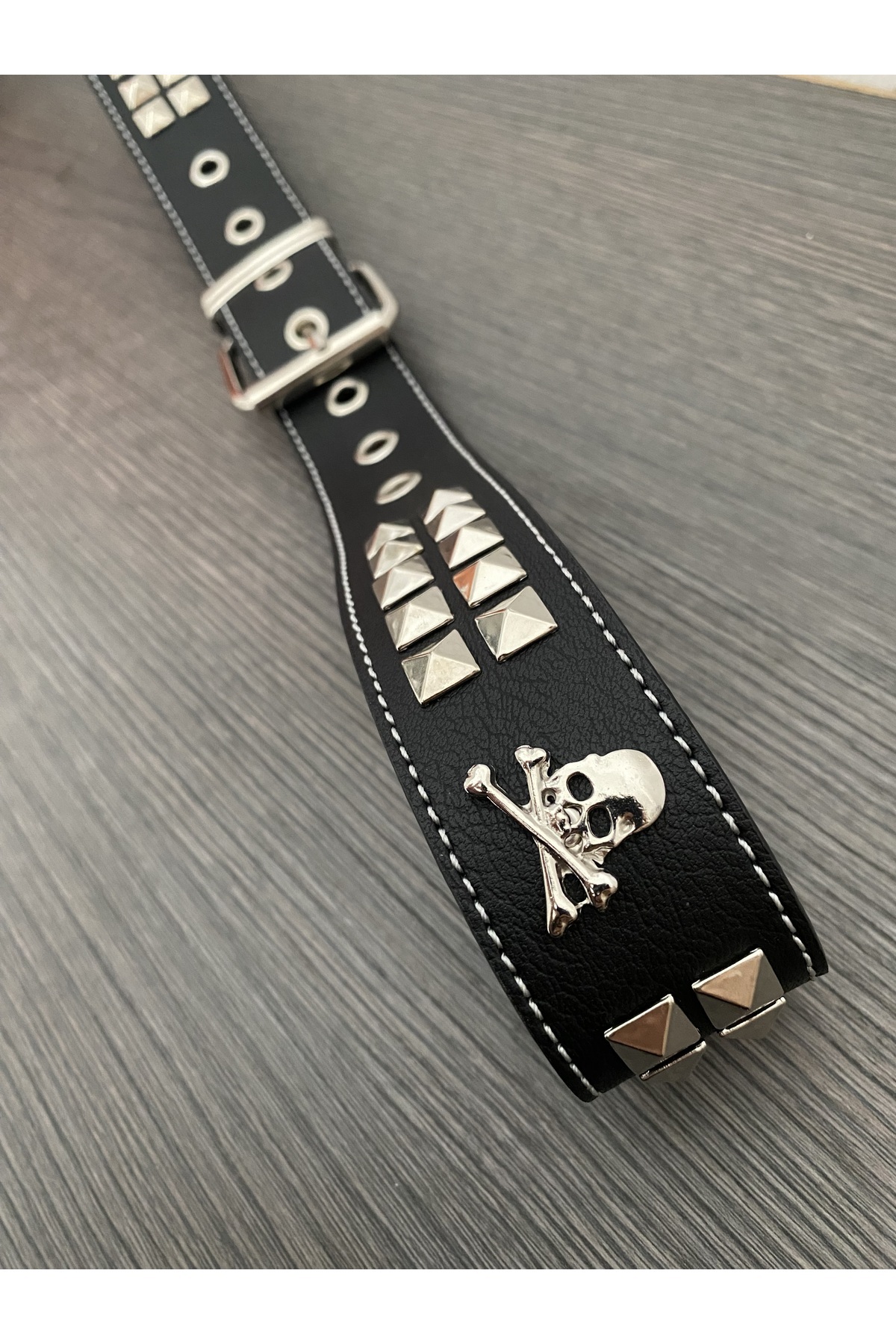 4.cm beyaz ip detaylı piramit kuru kafalı metalci gotik pantolon kemeri 4.cm beyaz ip detaylı piramit kuru kafalı metalci gotik pantolon kemeri 9094 115 CM
