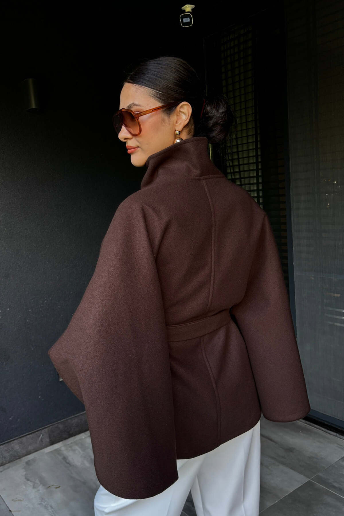 Kahverengi Panço Kaşe Ceket Kahverengi Panço Kaşe Ceket 9075512541423 40