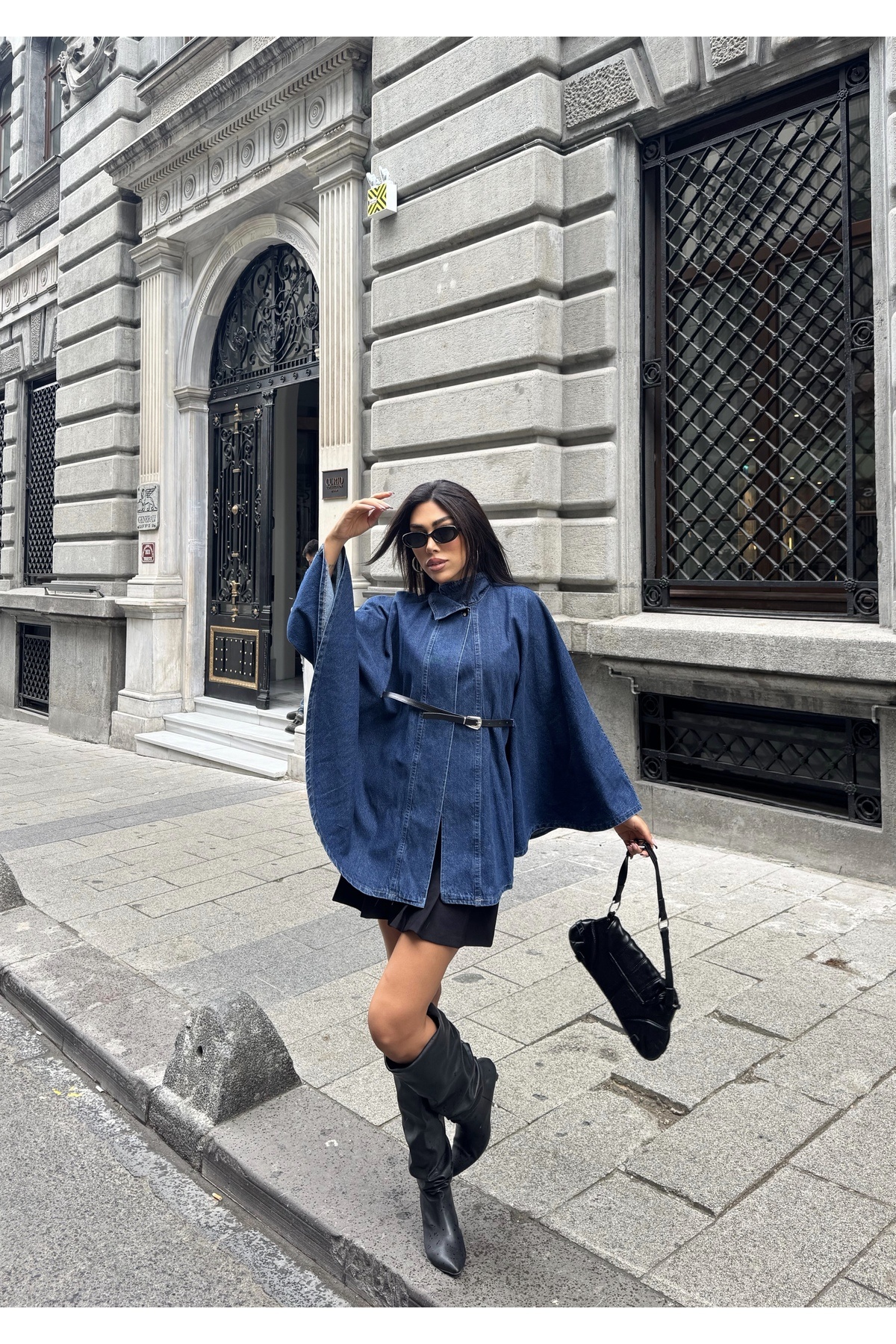 Kadın Kemerli Kot Salaş Panço Ceket Kadın Kemerli Kot Salaş Panço Ceket 08110310 2
