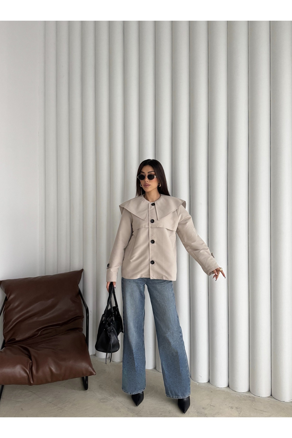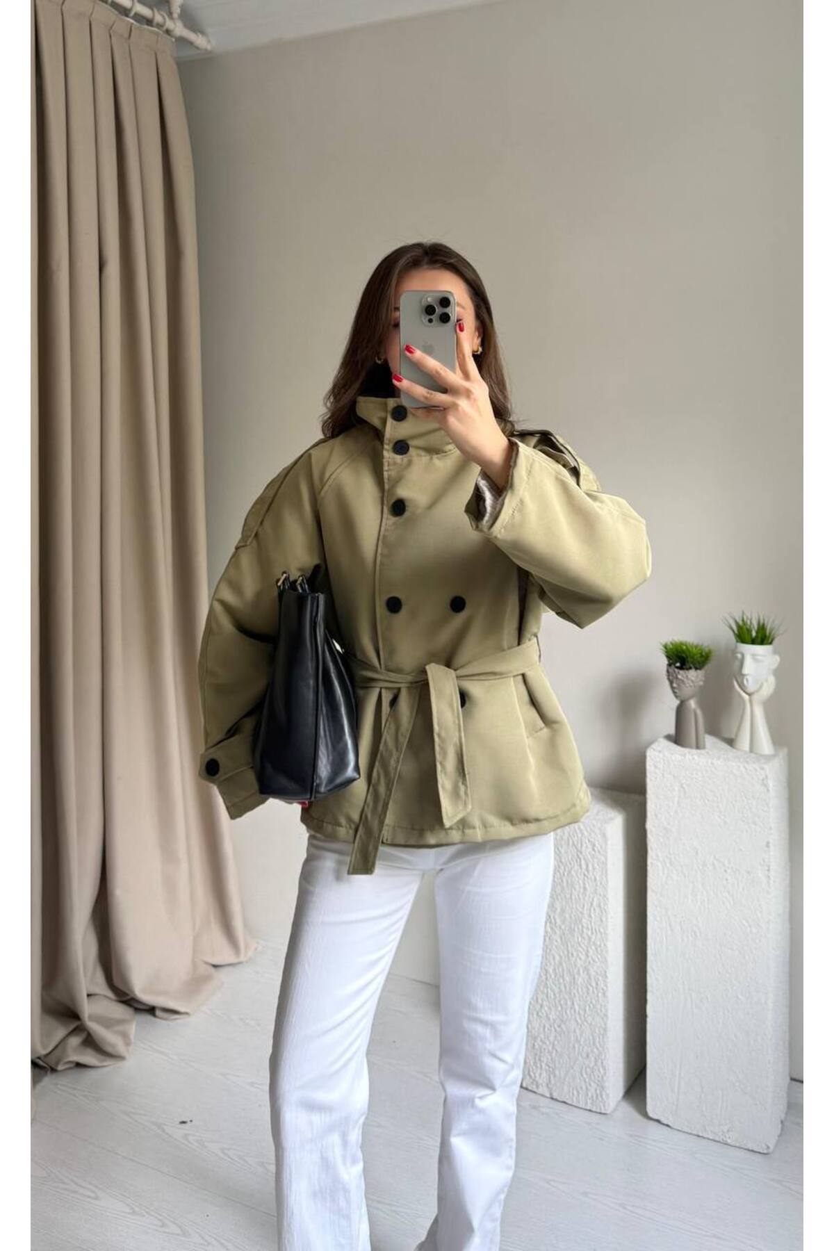 Trend Dik Yaka Düğme Detaylı Astarlı Şık Trençkot Trend Dik Yaka Düğme Detaylı Astarlı Şık Trençkot trenç1 L