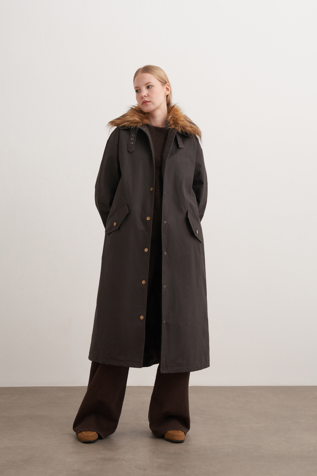 Mumlu Görünümlü Uzun Trençkot Mumlu Görünümlü Uzun Trençkot nissh12845 L