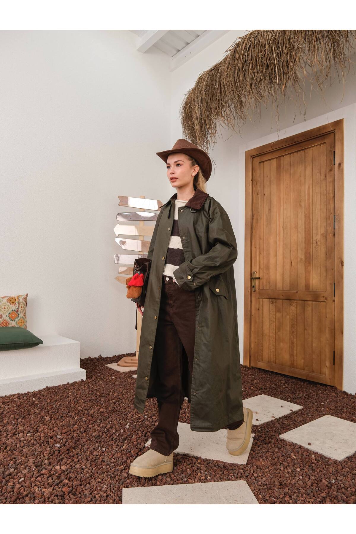 Mumlu Görünümlü Uzun Trençkot Mumlu Görünümlü Uzun Trençkot nissh12845 L