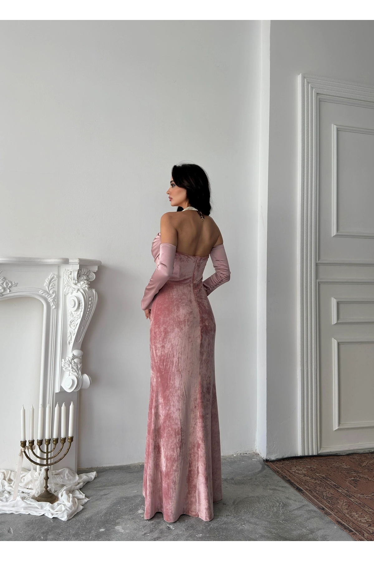 Drapeli Takma Kol Detaylı Kadife Abiye Pudra 0801068 Drapeli Takma Kol Detaylı Kadife Abiye Pudra 0801068 42