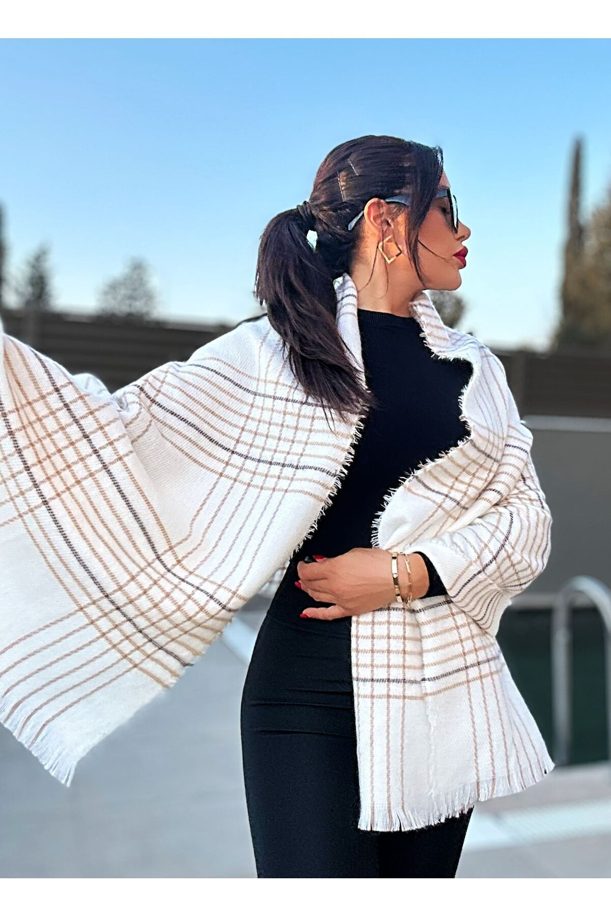 Kadın Yumuşak Dokulu Yünlü Kahverengi Çizgili Krem Omuz Şalı Atkı Kadın Yumuşak Dokulu Yünlü Kahverengi Çizgili Krem Omuz Şalı Atkı asalsal1001 Standart