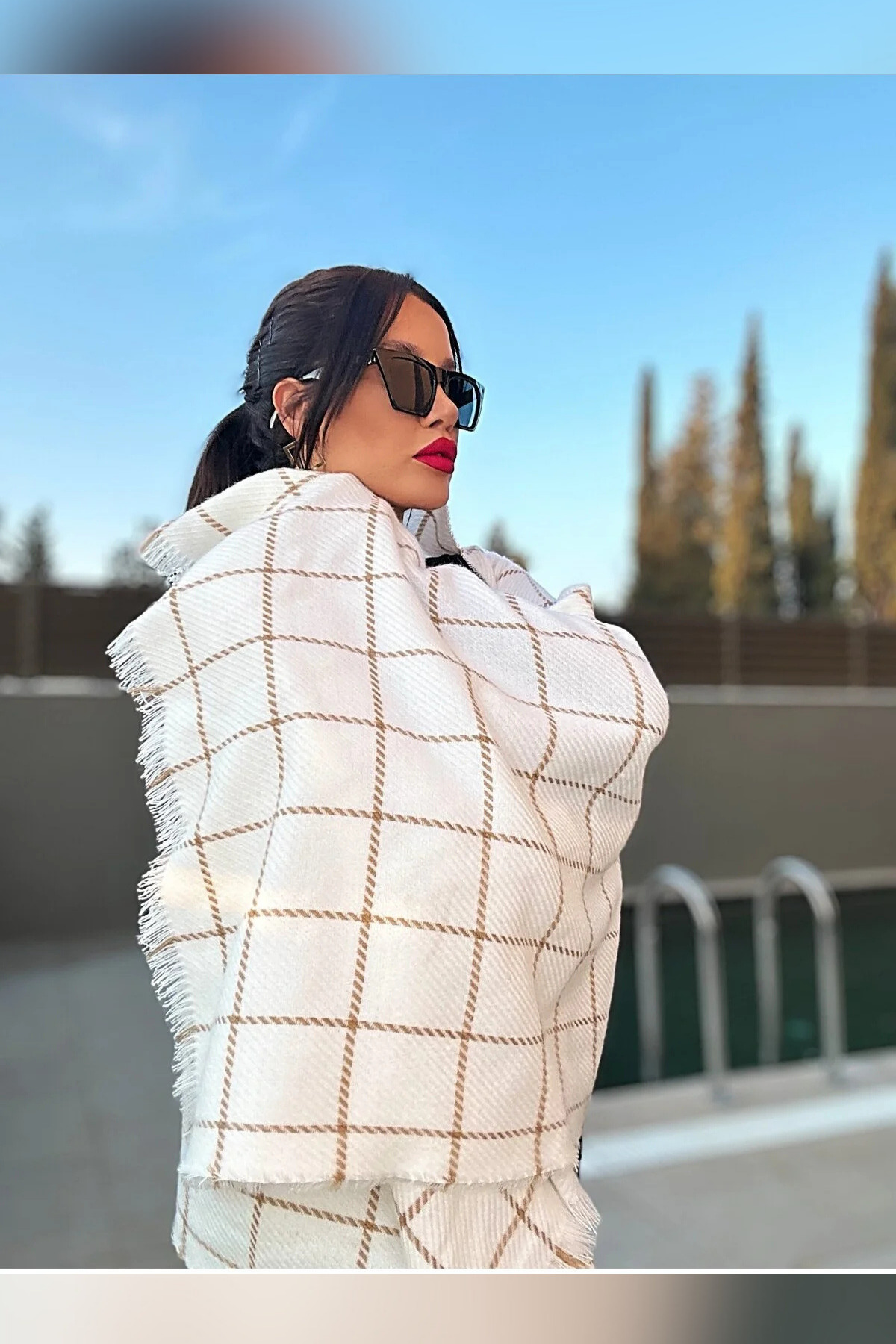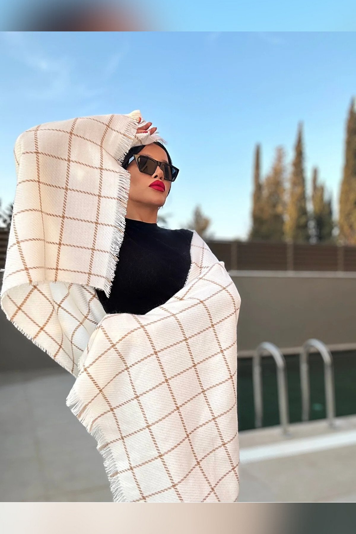 Kadın Yumuşak Dokulu Yünlü Krem Kahverengi Çizgili Atkı Omuz Şalı Kadın Yumuşak Dokulu Yünlü Krem Kahverengi Çizgili Atkı Omuz Şalı asalsal1001 Standart