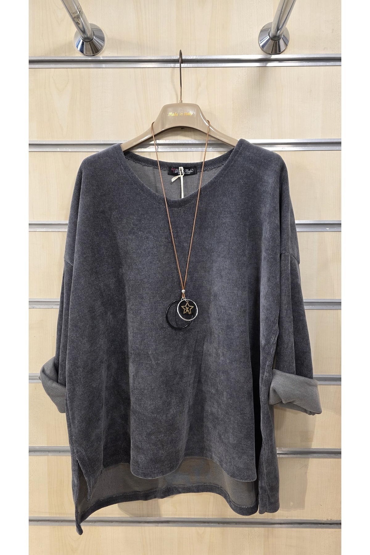 Kolyeli Kadife Bluz Düz Desen Kolyeli Kadife Bluz Düz Desen 20555 Düz Desen Kolyeli Kadife Bluz Standart
