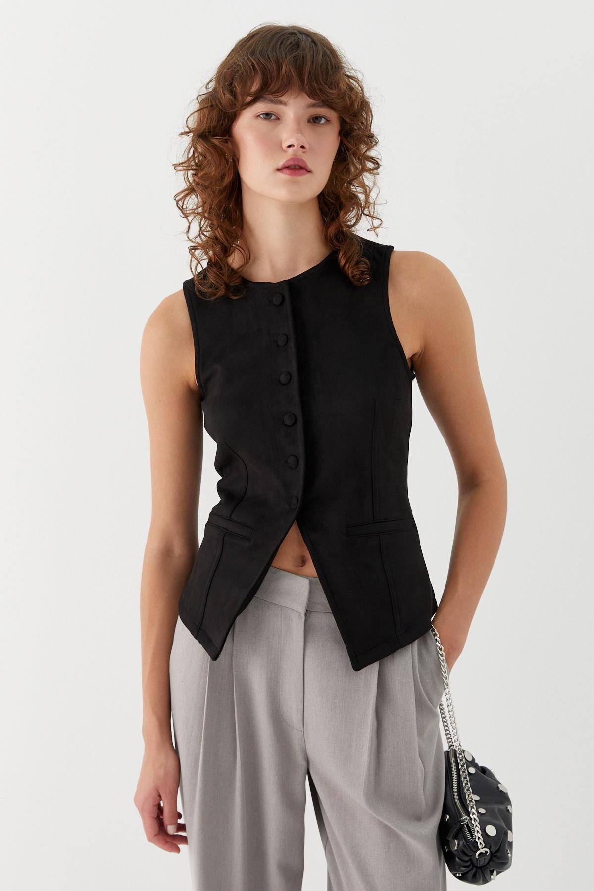 Bağlama Detaylı Süet Yelek Siyah Bağlama Detaylı Süet Yelek Siyah TRN4252_001 40