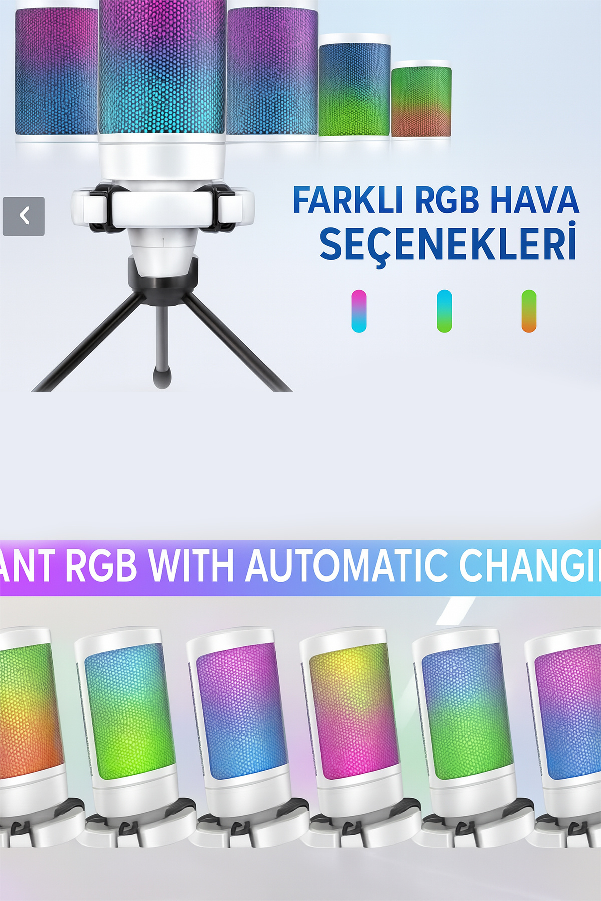 RGB Işıklı USB Mikrofon Otomatik Renk Geçişli, Tak-Çalıştır Yayın ve Kayıt İçin Profesyonel Mikrofon rgbpcmik