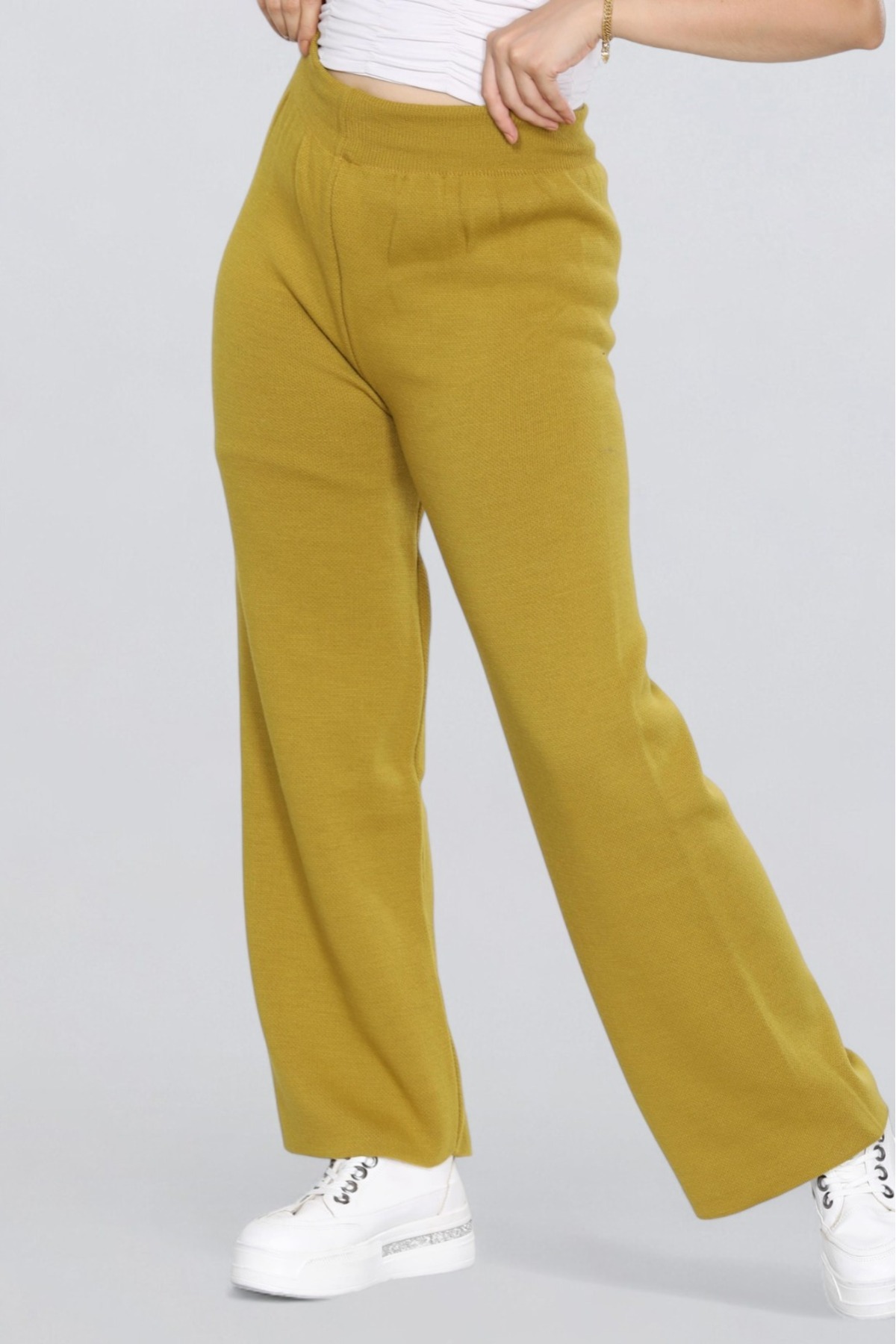 Kadın Yüksek Bel Lastikli Düz Paça Örme Pantolon Rahat Günlük Ev Giyim Kadın Yüksek Bel Lastikli Düz Paça Örme Pantolon Rahat Günlük Ev Giyim trikoalt Standart