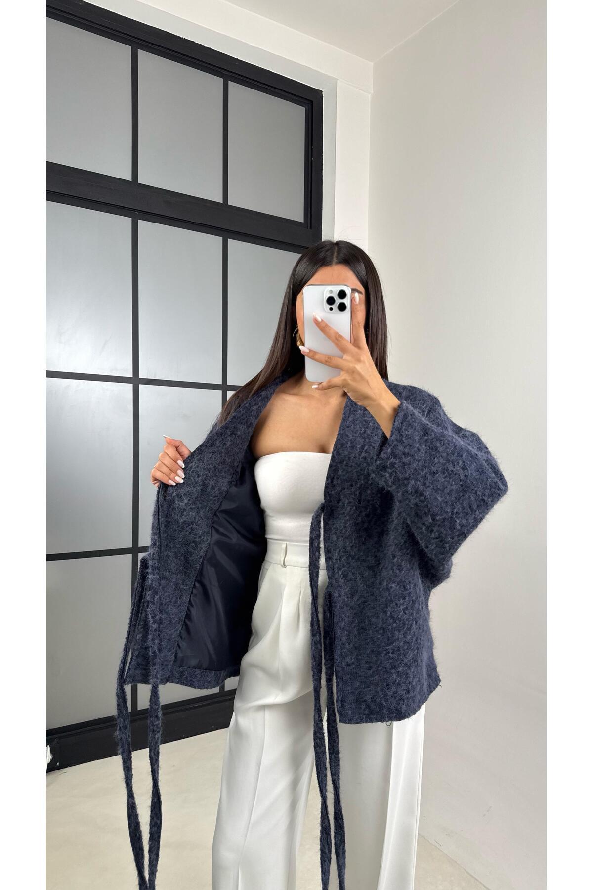 Lacivert Kırçıllı Astarlı Önden Bağlamalı Premium Ceket GAUS-00512 Lacivert Kırçıllı Astarlı Önden Bağlamalı Premium Ceket GAUS-00512