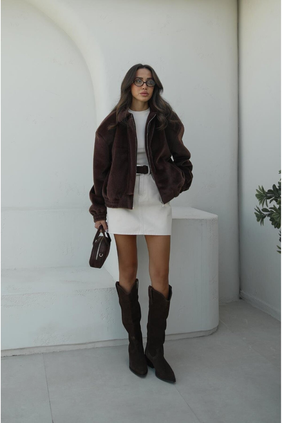 Kahverengi Vatkalı Kürk Bomber Ceket Kahverengi Vatkalı Kürk Bomber Ceket Hcek634 L