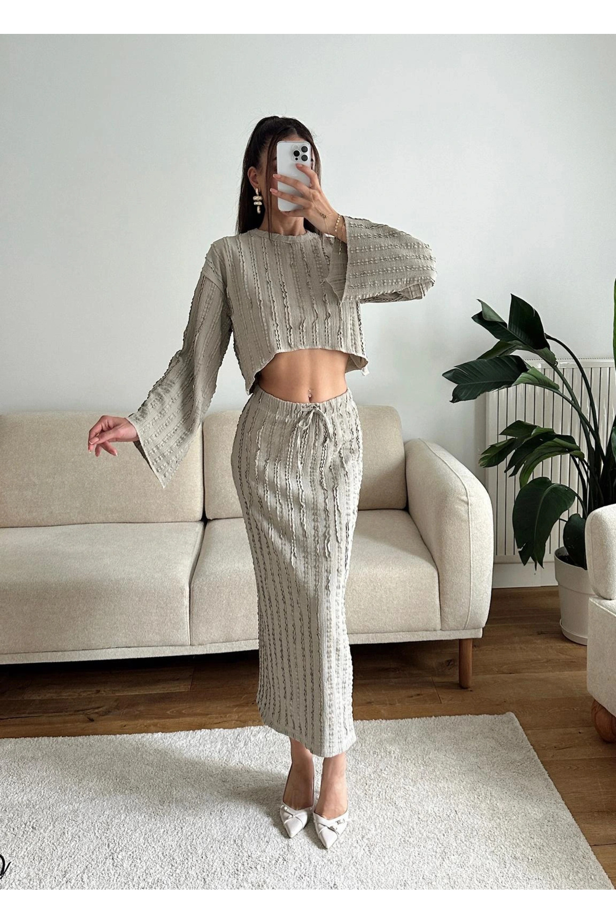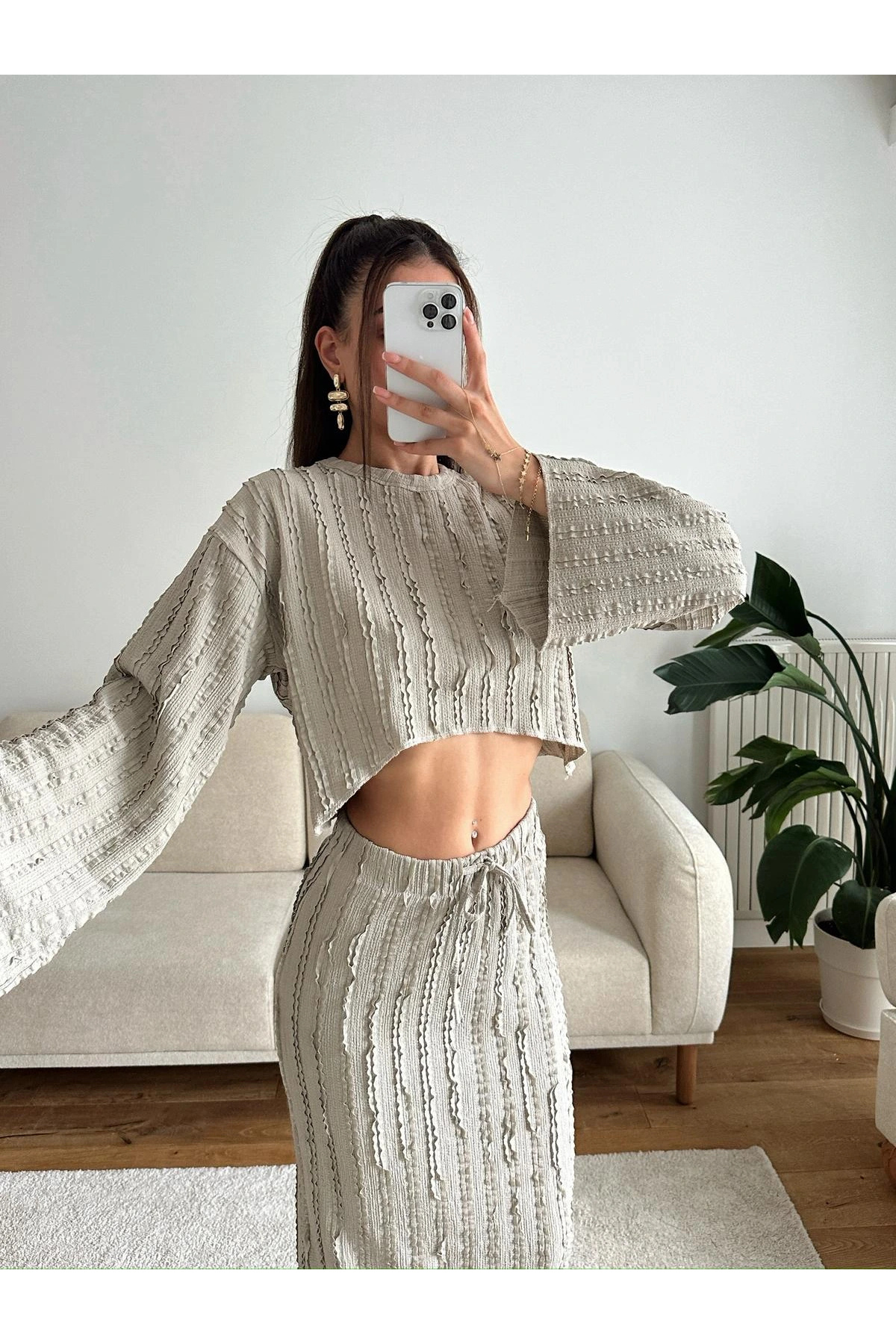 Salaş Crop & Etekli Takım - BEJ Salaş Crop & Etekli Takım - BEJ P18561S6665 L