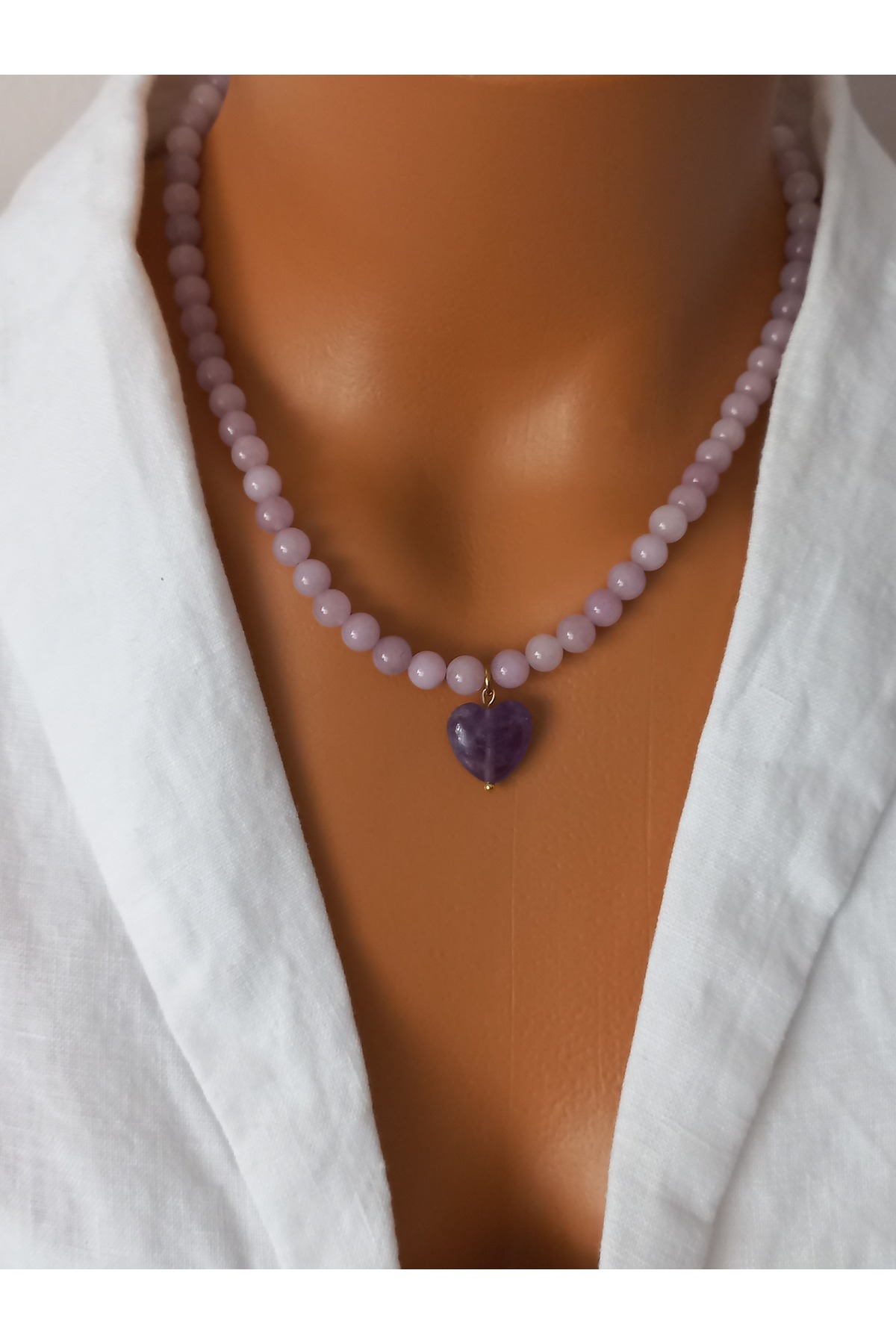 - Materyal Bileşeni : Ametist kalp kolye ucu ve kunzit taşlı kolye