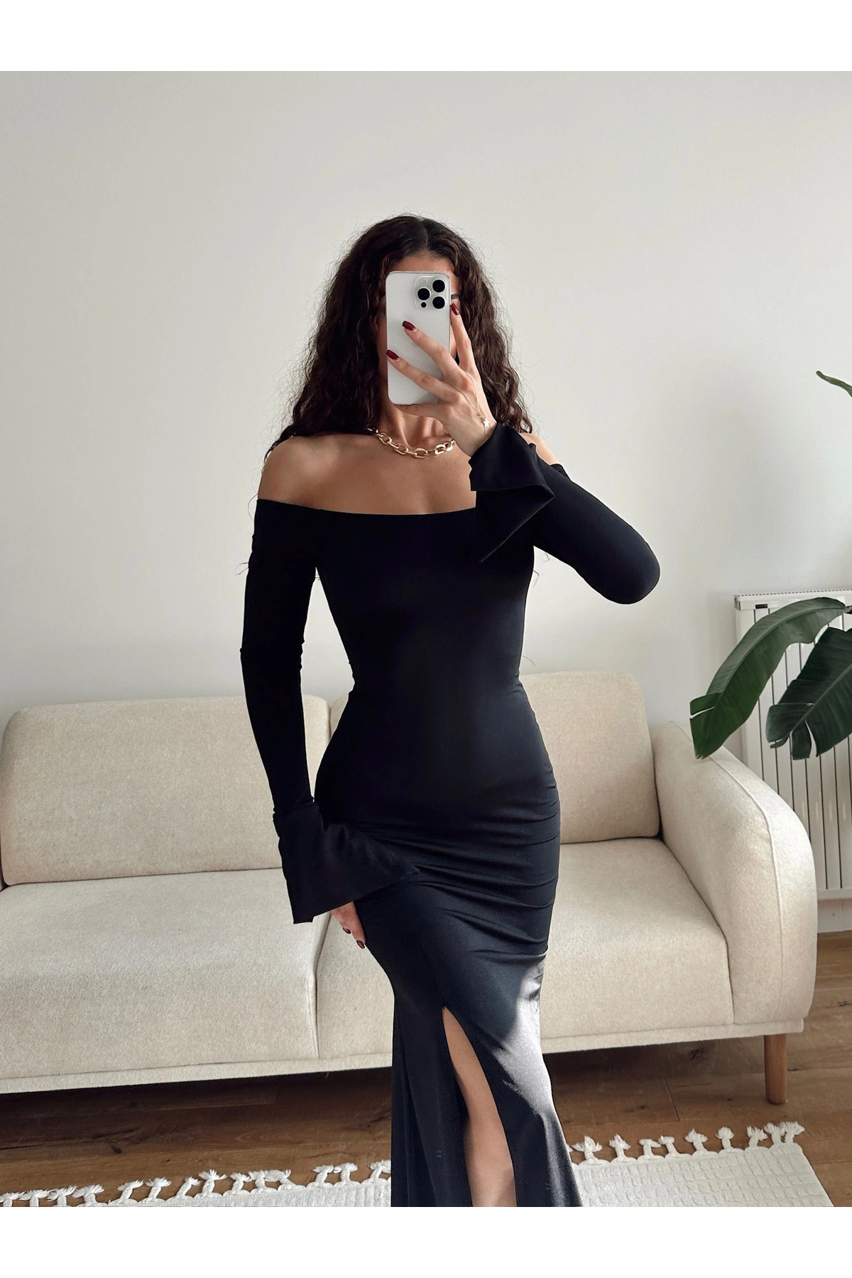 Flare Sırt Maxi Uzun Elbise - SİYAH Flare Sırt Maxi Uzun Elbise - SİYAH P18552S5201 L