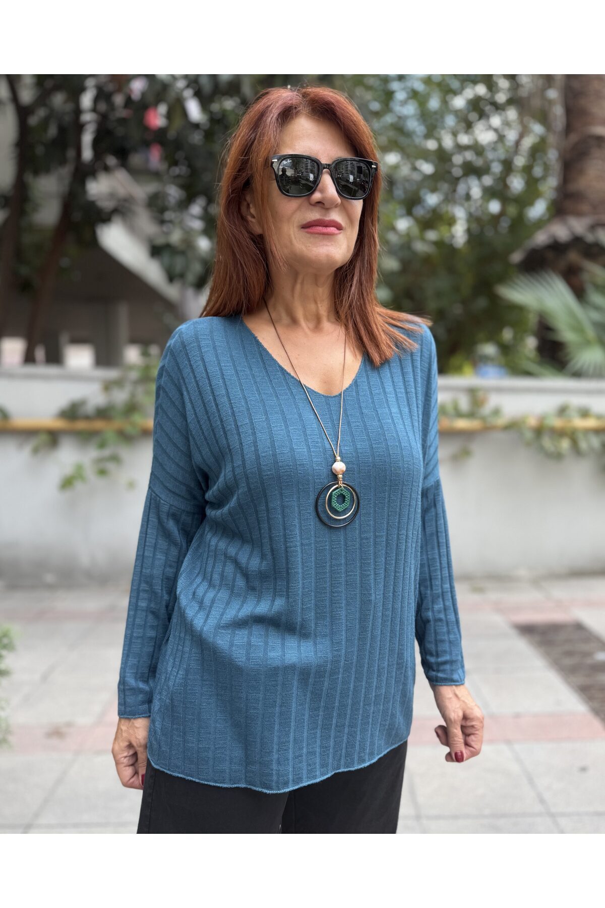 İtalyan Kolyeli Fitilli Triko Petrol Mavi İtalyan Kolyeli Fitilli Triko Petrol Mavi DE52181 Standart