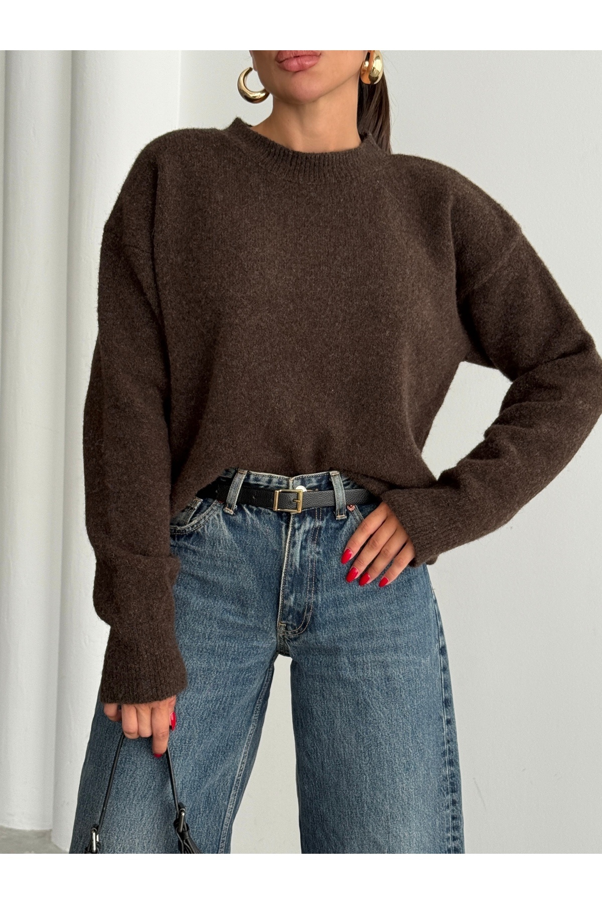 Bisiklet Yaka Oversize Triko Kazak Bisiklet Yaka Oversize Triko Kazak DIKM88271 Standart