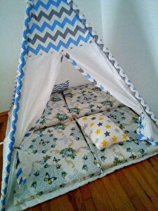 Pamuk Ahşap Kızıldereli Oyun ve Uyku Çadırı Pamuk Ahşap Kızıldereli Oyun ve Uyku Çadırı mavi zikzak تک سایز