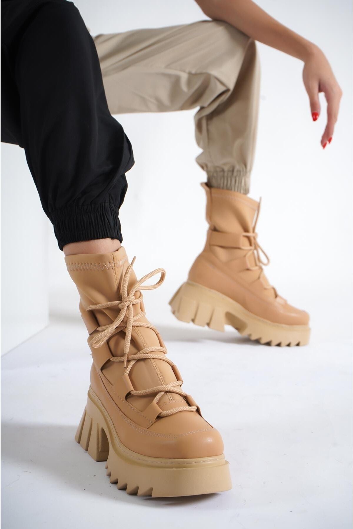 Kadın Strech Bağcıklı KAlın Tabanlı Moda Bot Kadın Strech Bağcıklı KAlın Tabanlı Moda Bot ALD1700-1700 40