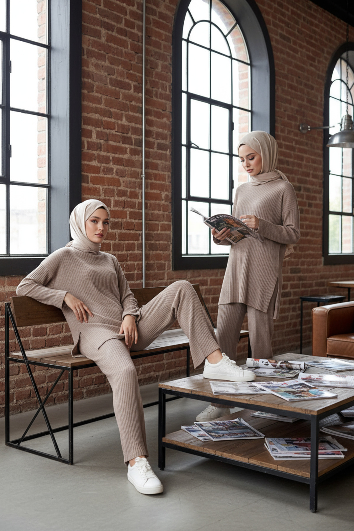Vizon - Fitilli Tesettür İkili Takım (Tunik & Pantolon) Vizon - Fitilli Tesettür İkili Takım (Tunik & Pantolon) 5300-TES XL