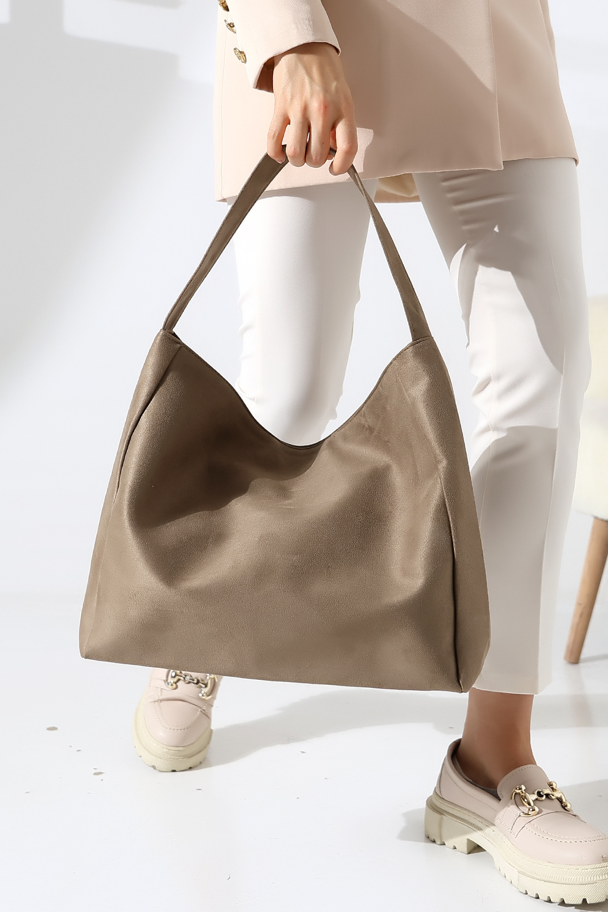 Vizon Süet Kadın Çanta Büyük Boy Fermuarlı Omuz ve Kol Çantası Vizon Süet Kadın Çanta Büyük Boy Fermuarlı Omuz ve Kol Çantası BLZBUYUKSUET Standart