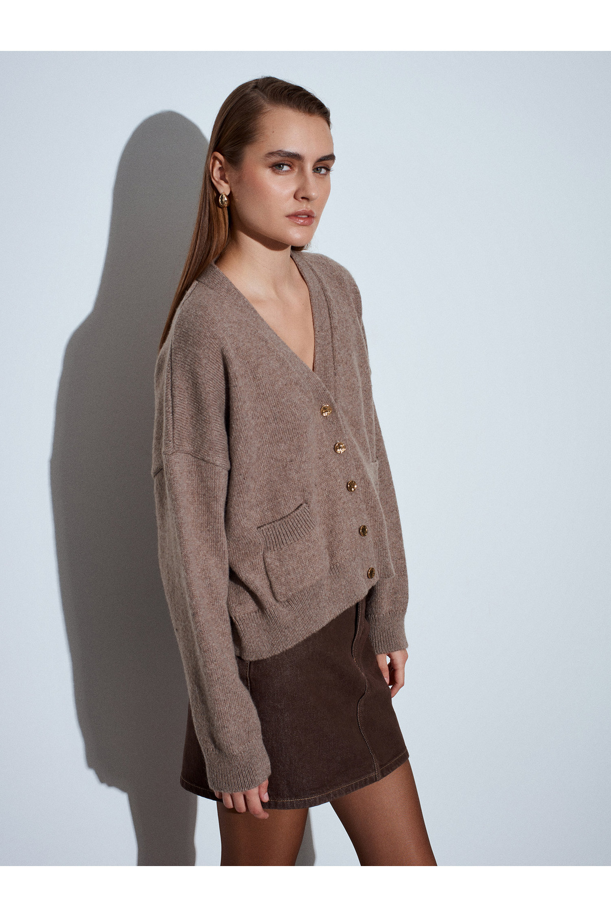 Kadın V Yaka Düğmeli Yumuşak Dokulu Uzun Kol Triko Hırka Kadın V Yaka Düğmeli Yumuşak Dokulu Uzun Kol Triko Hırka N26W16026 Standart