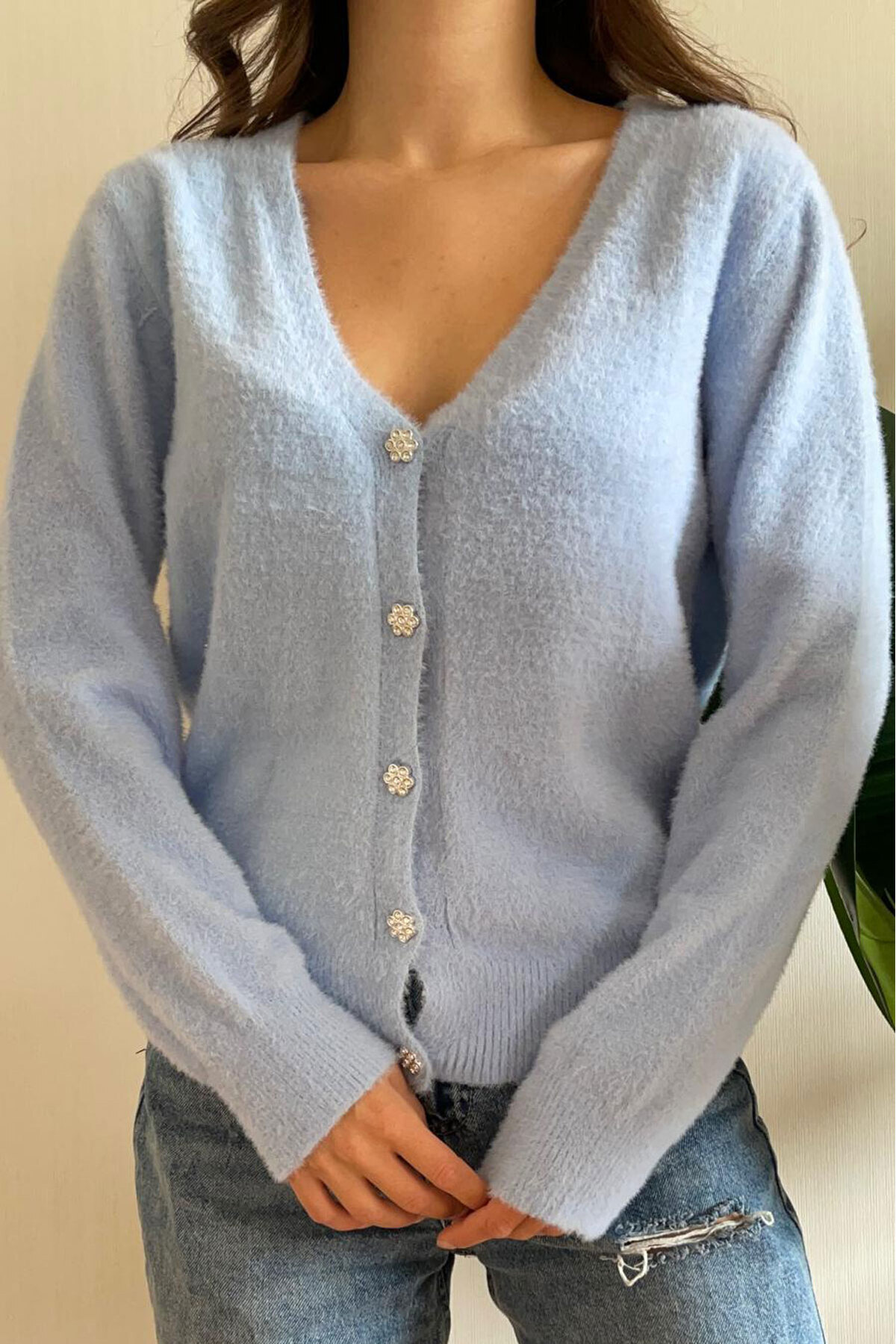 Kadın V Yaka Düğmeli Yumuşak Dokulu Uzun Kol Triko Hırka Kadın V Yaka Düğmeli Yumuşak Dokulu Uzun Kol Triko Hırka N26W16026 Standart